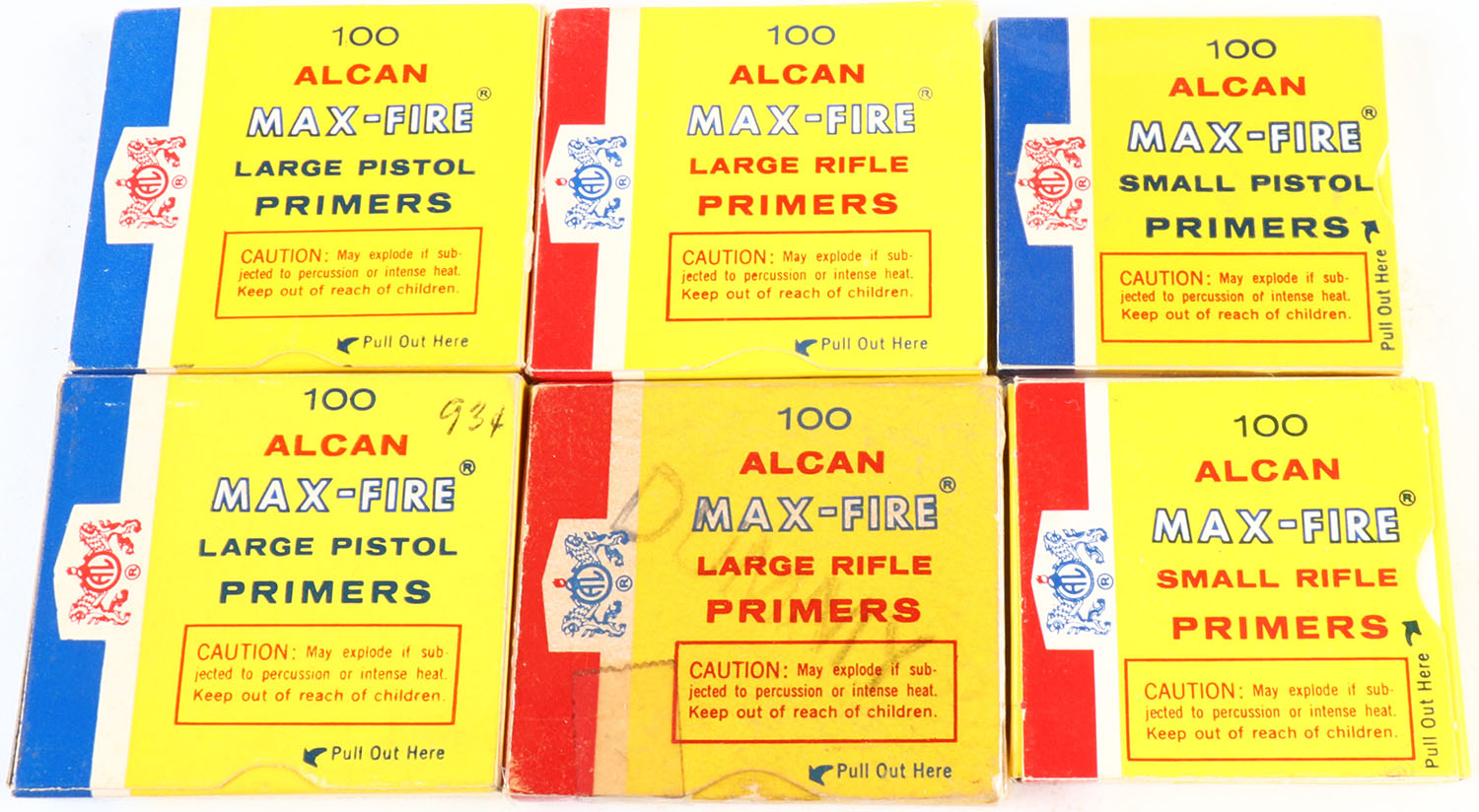 Lot of 6 primer boxes, all Full, both have age soiling. Grade: Very Good - Value: 4 to 40