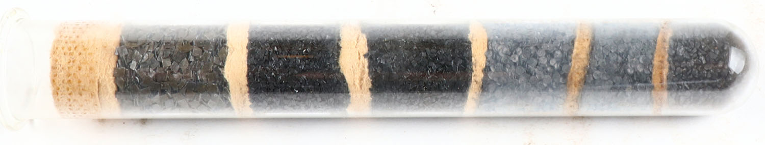 Glass tube with various layers of powder, made for salesman display. Grade: Very Good ++ - Value: 6 to 60