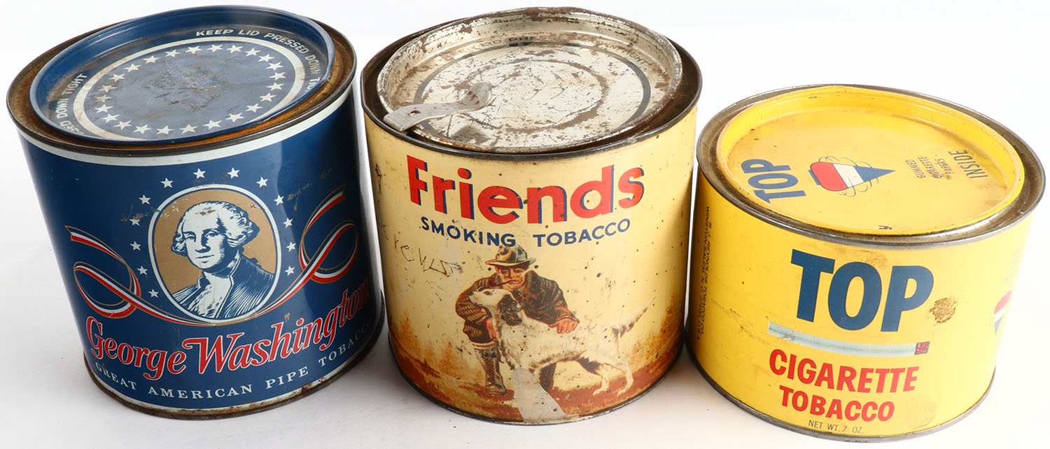 Lot of 3 large tobacco tins. Grade: Very Good - Value: 10 to 100