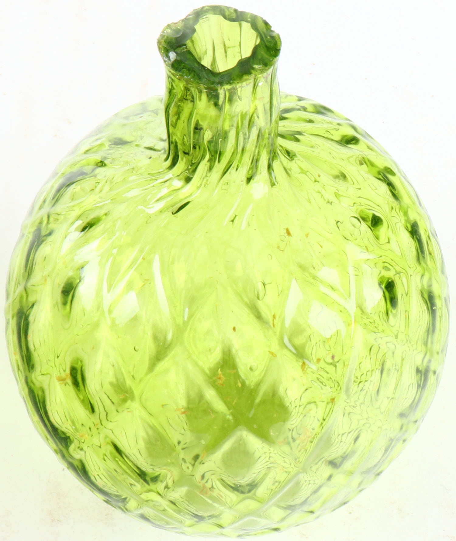 RARE! Green Glass Target Ball, diamond pattern, 2 5/8'' dia., extremely high neck, circa 1880-1900. Grade: Excellent ++ - Value: 300 to 1500