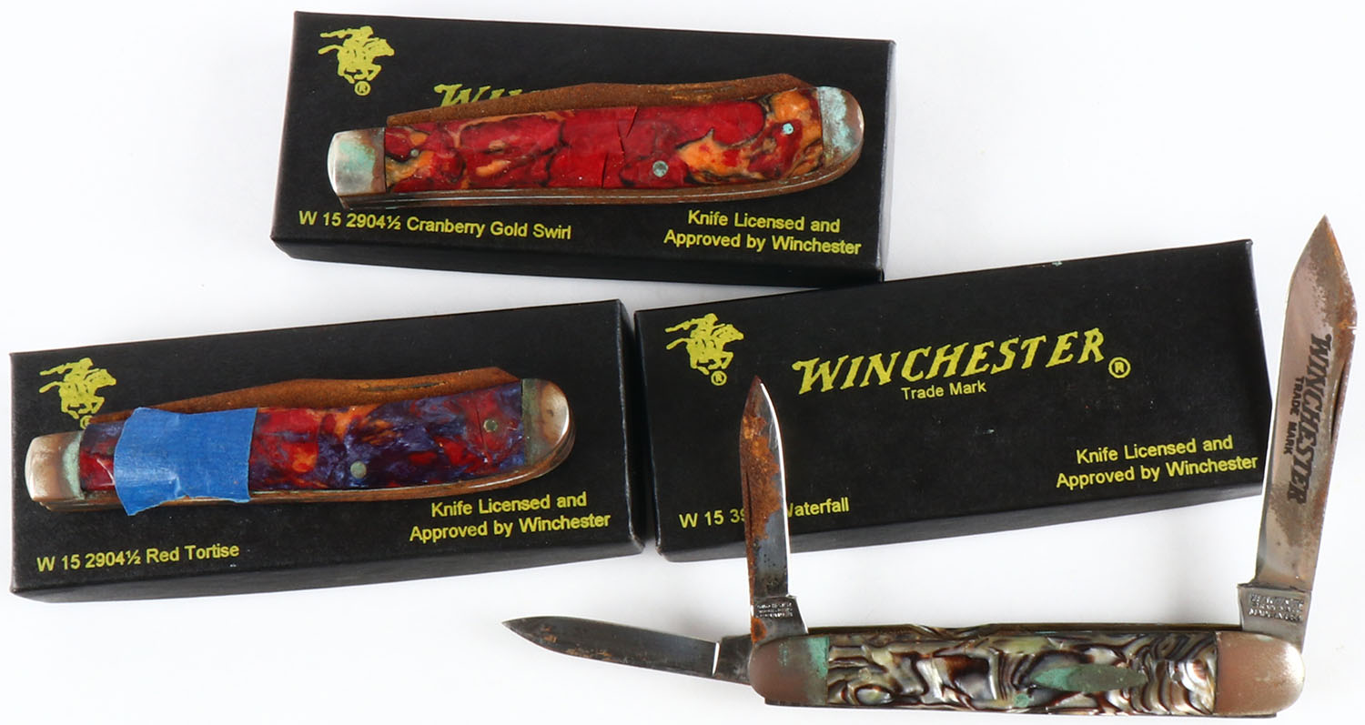 Lot of 3 Winchester folding knife, in orginal boxes,, all have heavy rust. Grade: Good - Value: 4 to 40