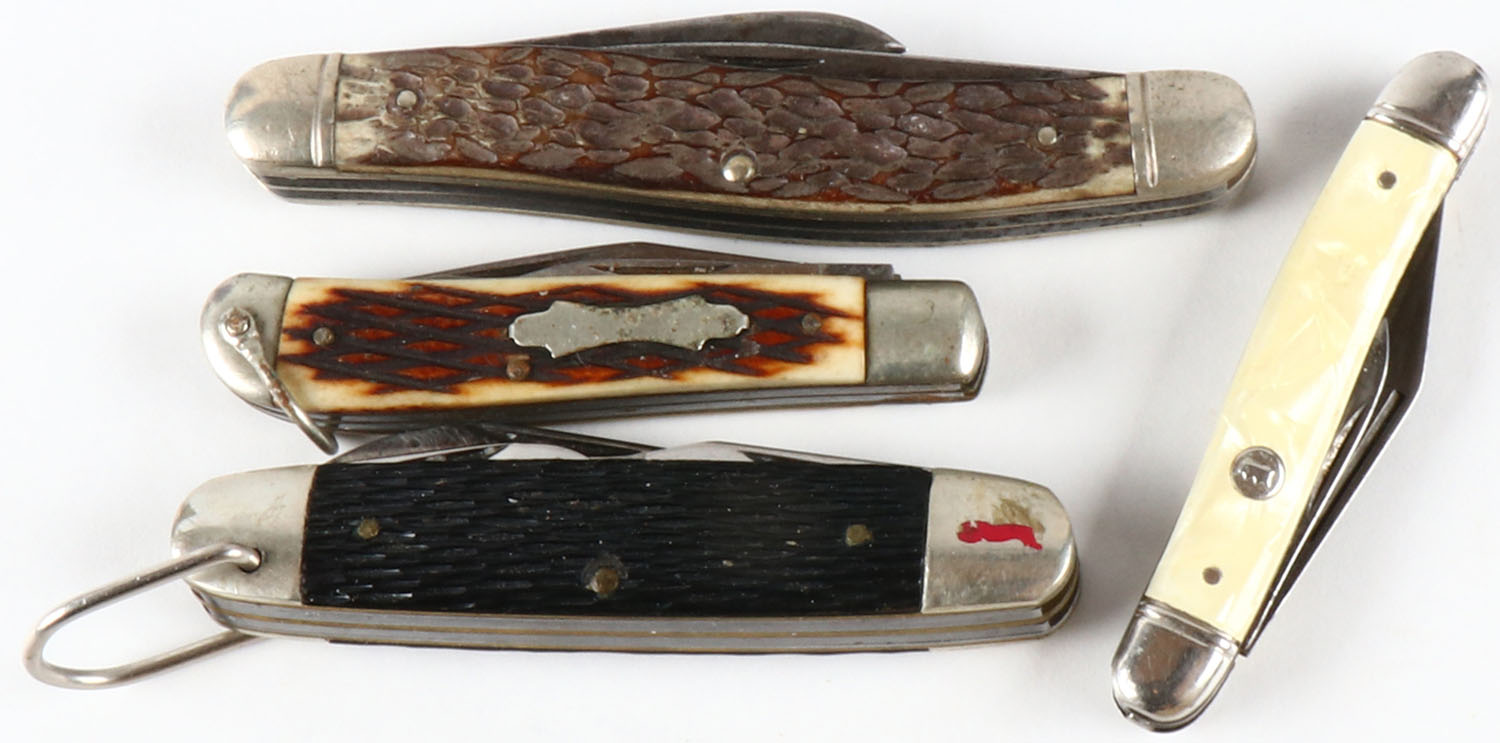 Lot of 4 small folding knives. Grade: Very Good ++ - Value: 6 to 40