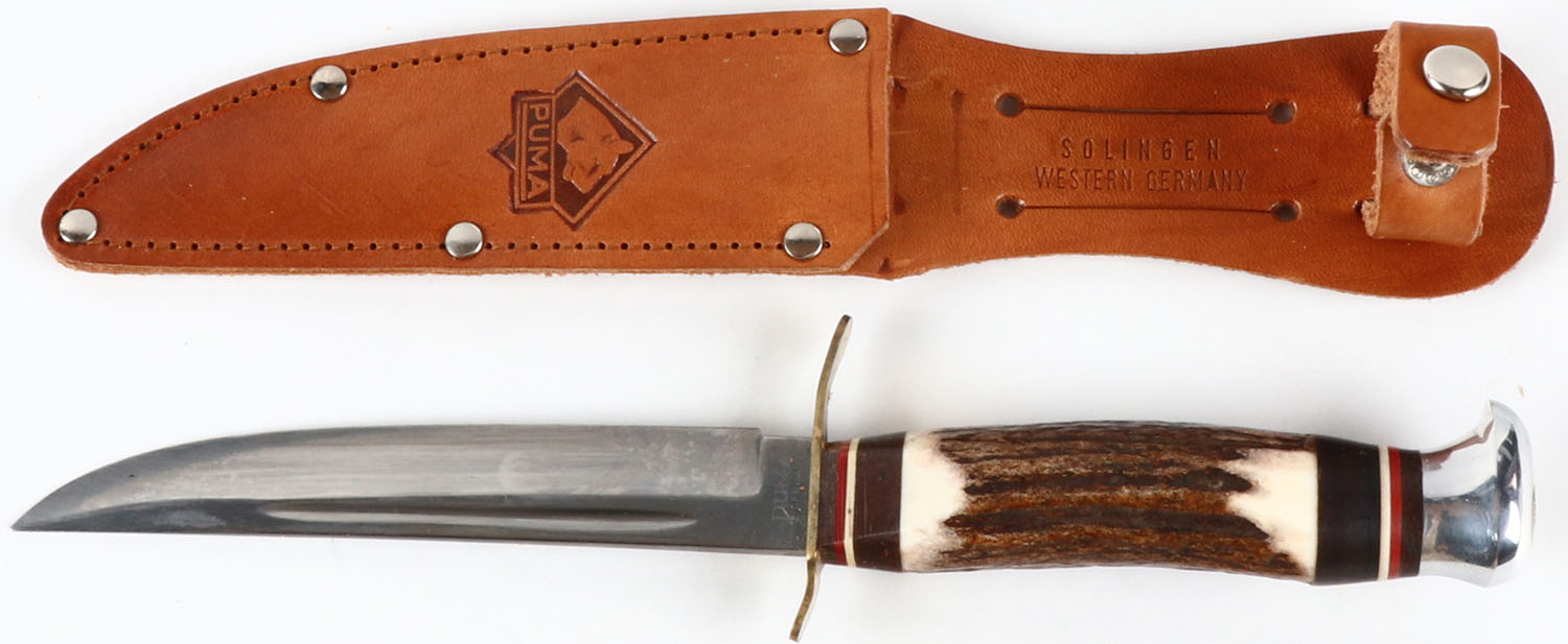 RARE! PUMA knife, 5'' blade, in original sheath, stag handle. Grade: Excellent ++ - Value: 50 to 250