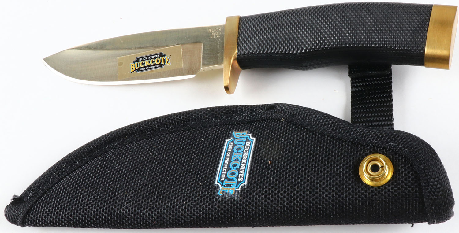 Buck knife, buckcote, 4'' blade, in sheath. Grade: MINT - Value: 16 to 60
