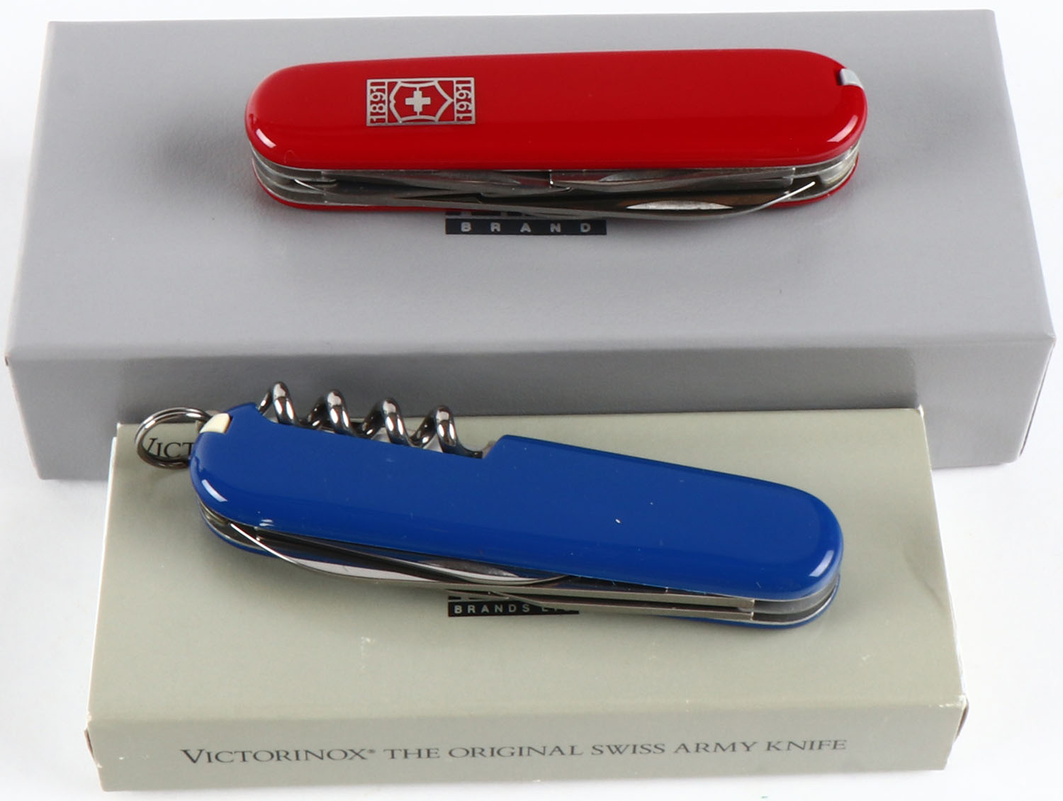 Lot of 2 Swiss Army folding knives, in orginal boxes. Grade: Excellent - Value: 40 to 150