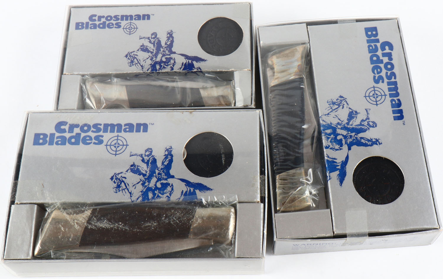 Lot of 3 Crosman Blades folding knives, in orginal boxes. Grade: Excellent - Value: 16 to 60