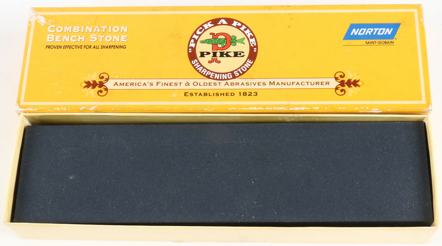 Sharpening stone, in orginal box. Grade: Excellent - Value: 4 to 40