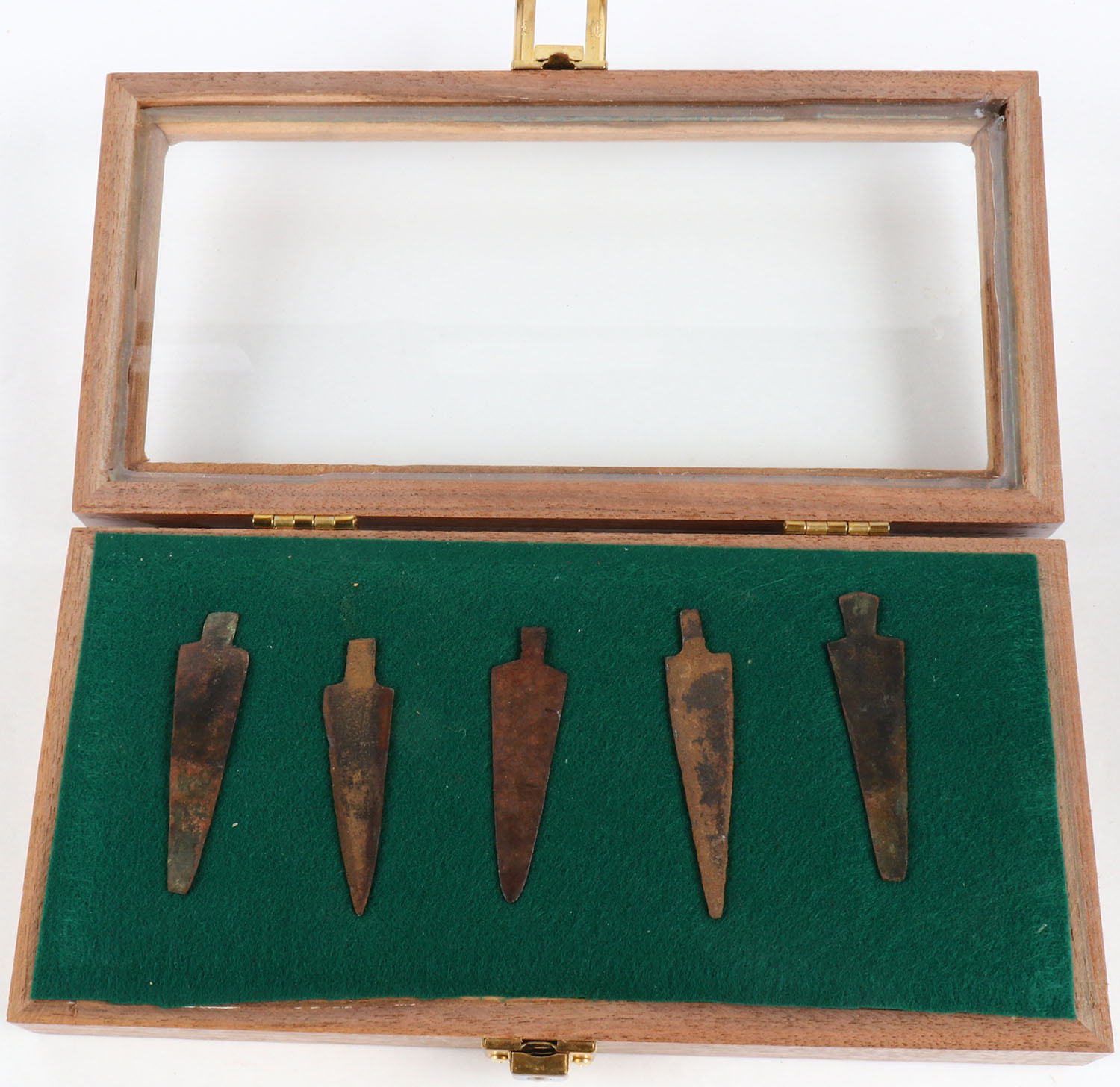 Lot of 5 metal spear points, all have rust. Grade: Very Good - Value: 50 to 150