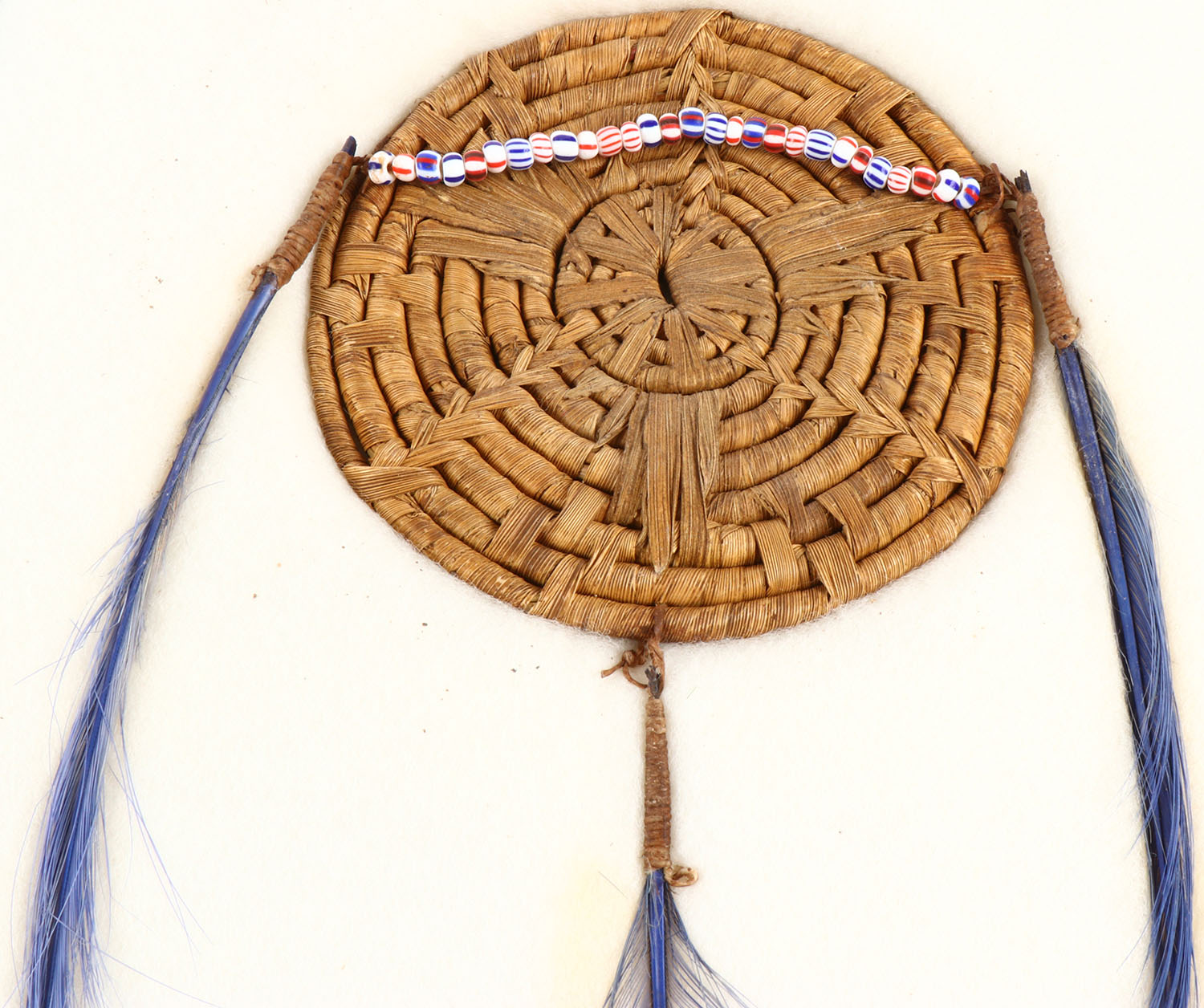 Dreamcatcher, small glass beads with feathers, 9'' tall. Grade: Very Good ++ - Value: 30 to 150