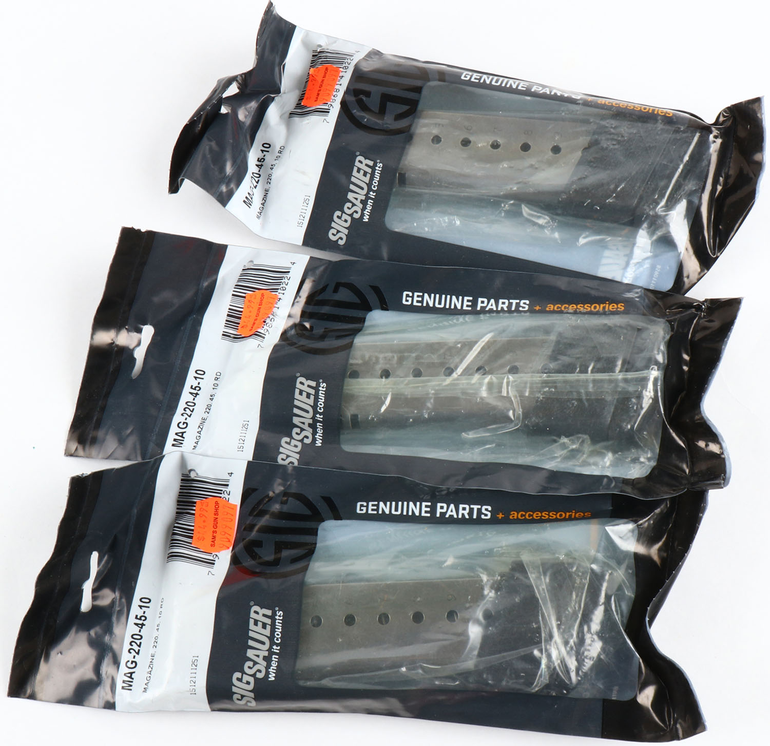 Lot of 3 Sig Sauer P 220 mags, 45 cal, 10 rd mags, sealed in original packaging . Grade: Excellent - Value: 40 to 100