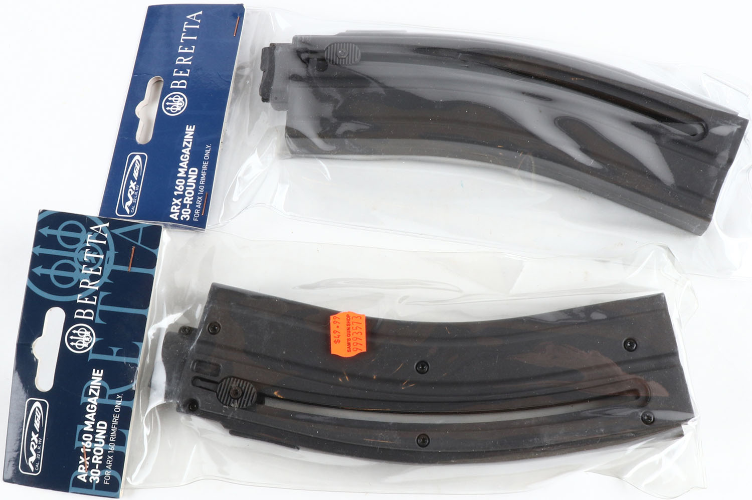 Lot of 2 Beretta ARX160 30rd .22 LR mag, sealed in orginal packaging. Grade: MINT - Value: 50 to 150