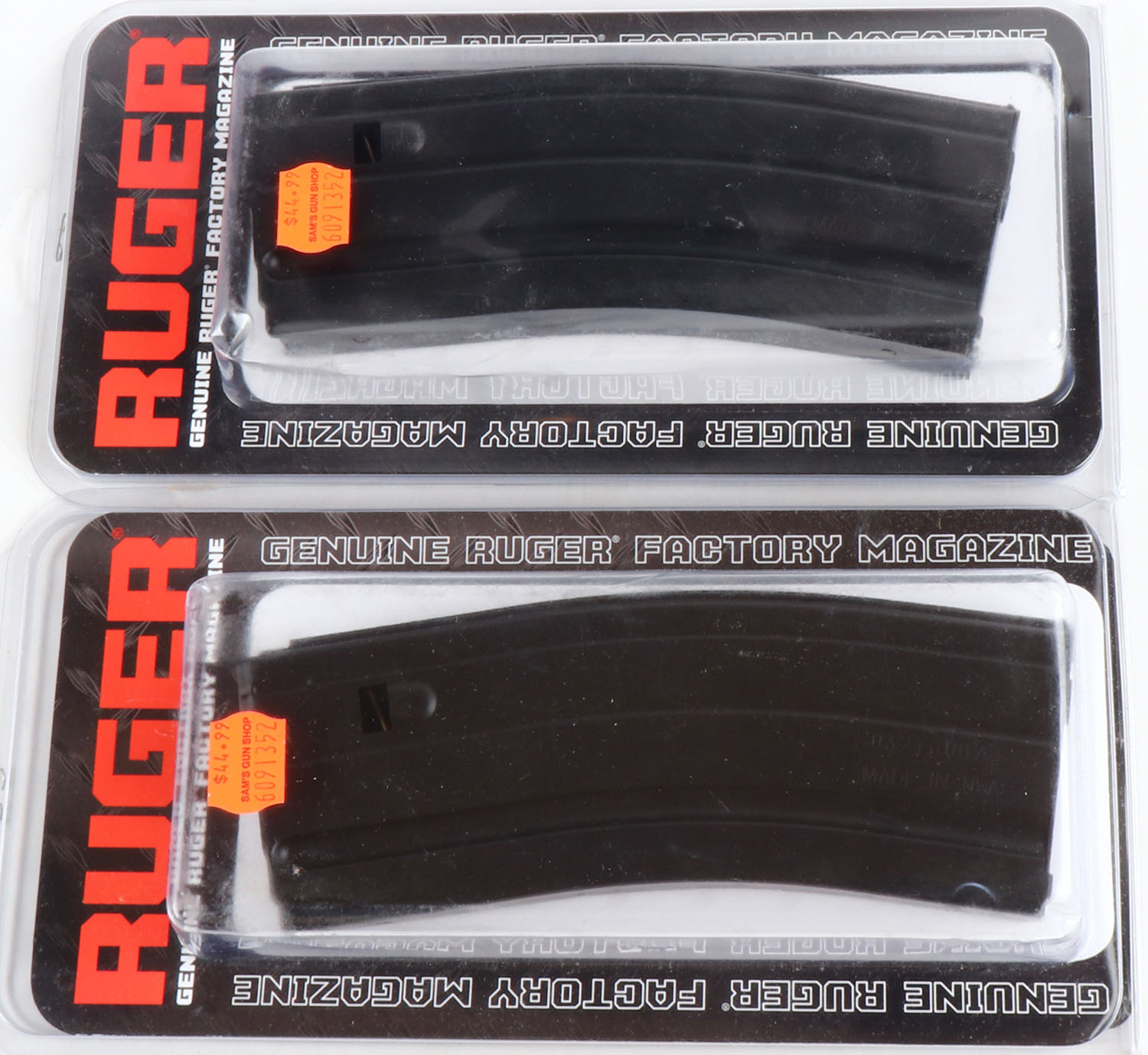 Lot of 2 Ruger mags., 25 rd, 5.56 cal mags, sealed in orginal packaging. Grade: MINT - Value: 40 to 80