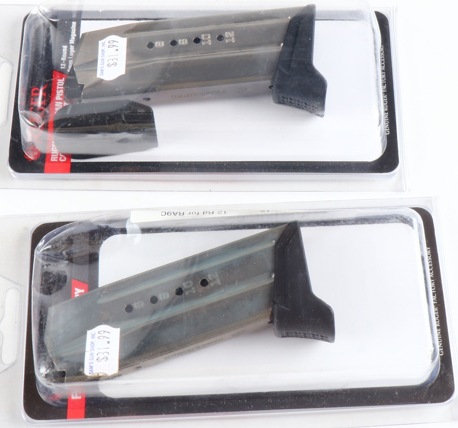 Lot of 2 Ruger mags., 12 rd, 9mm cal mags, sealed in orginal packaging. Grade: MINT - Value: 30 to 60
