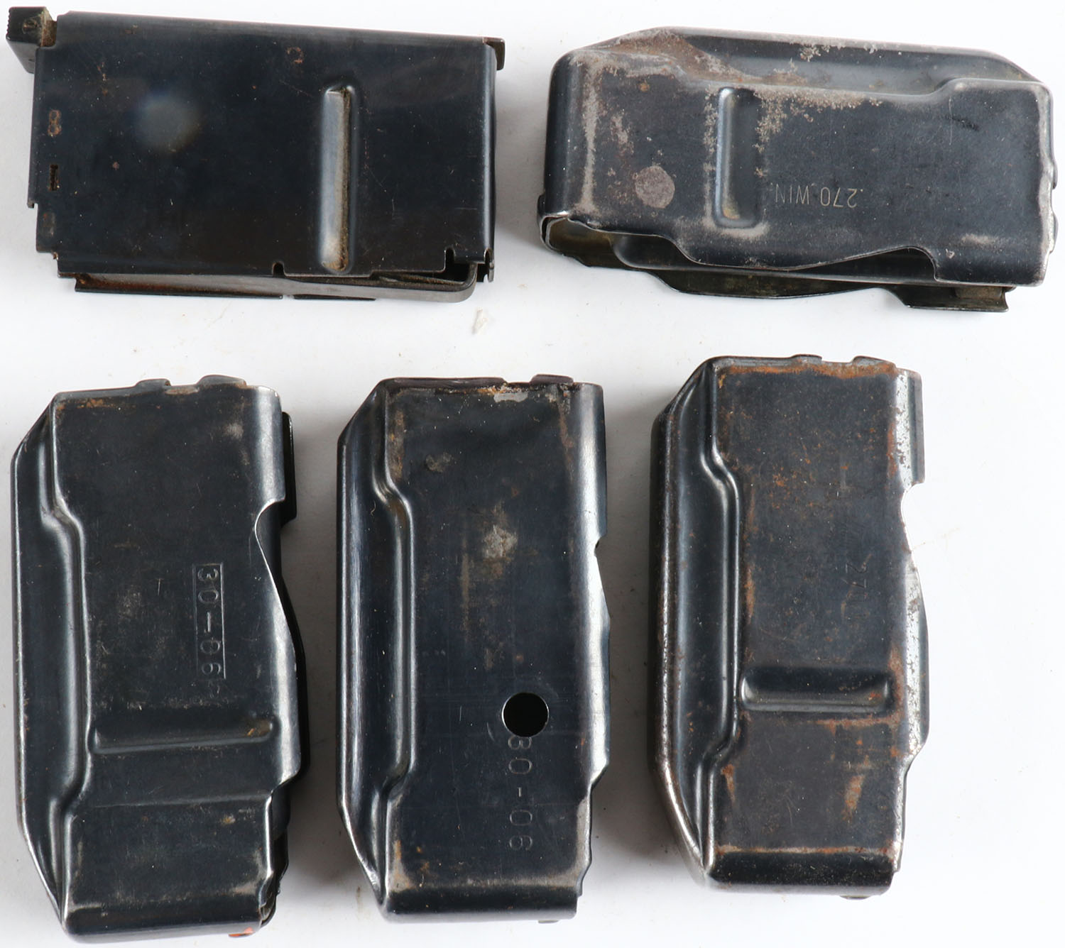 Lot of 5 rifle box mags., (2) 30-06, (2) .270 win. And 6mm Rem. Grade: Very Good ++ - Value: 40 to 250