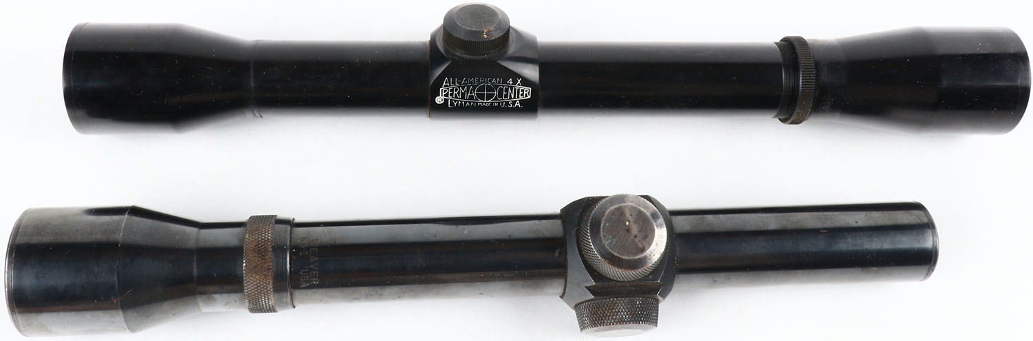Lot of 2 rifle scopes, Lyman All-American 4x, Weaver K3-1. Grade: Very Good ++ - Value: 20 to 60