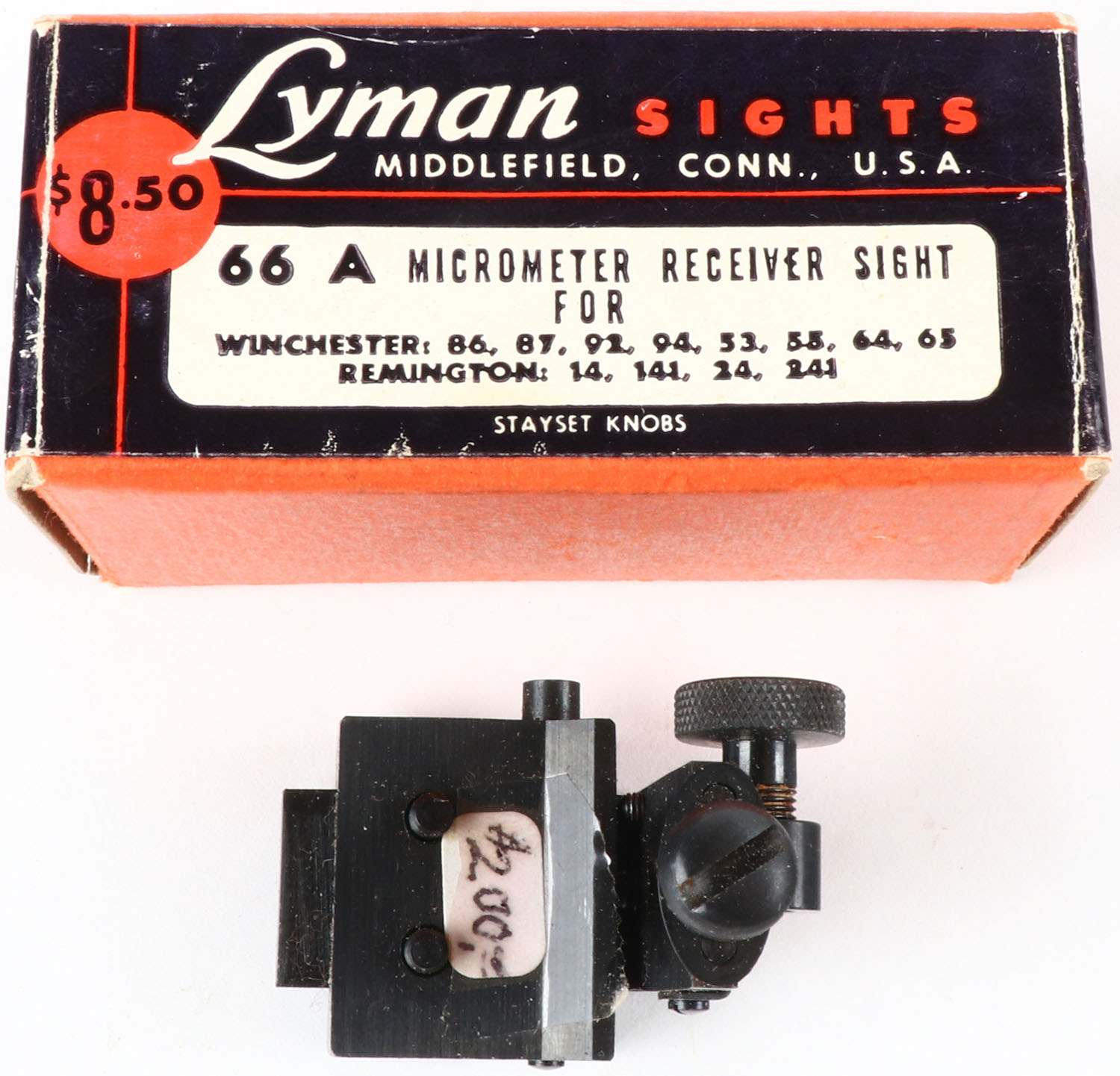 Lyman Tang sight 66A, in orginal box with screws & direction sheet. Grade: Excellent - Value: 100 to 300