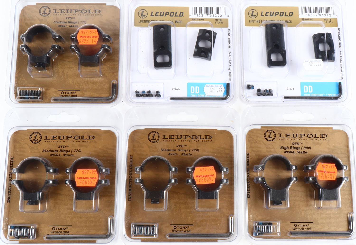 Lot of 6 Leupold mounts/scope rings, orginal packaging. Grade: MINT - Value: 6 to 60