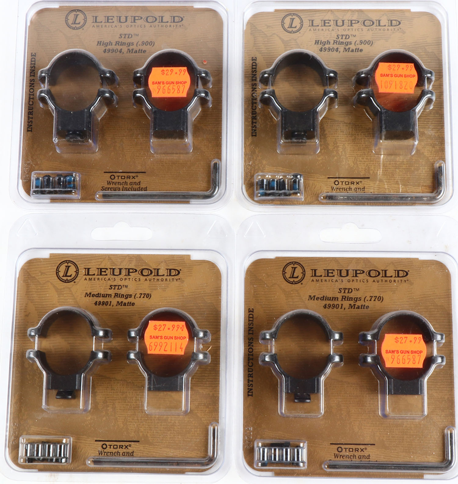 Lot of 4 Leupold scope rings, orginal packaging. Grade: MINT - Value: 6 to 60