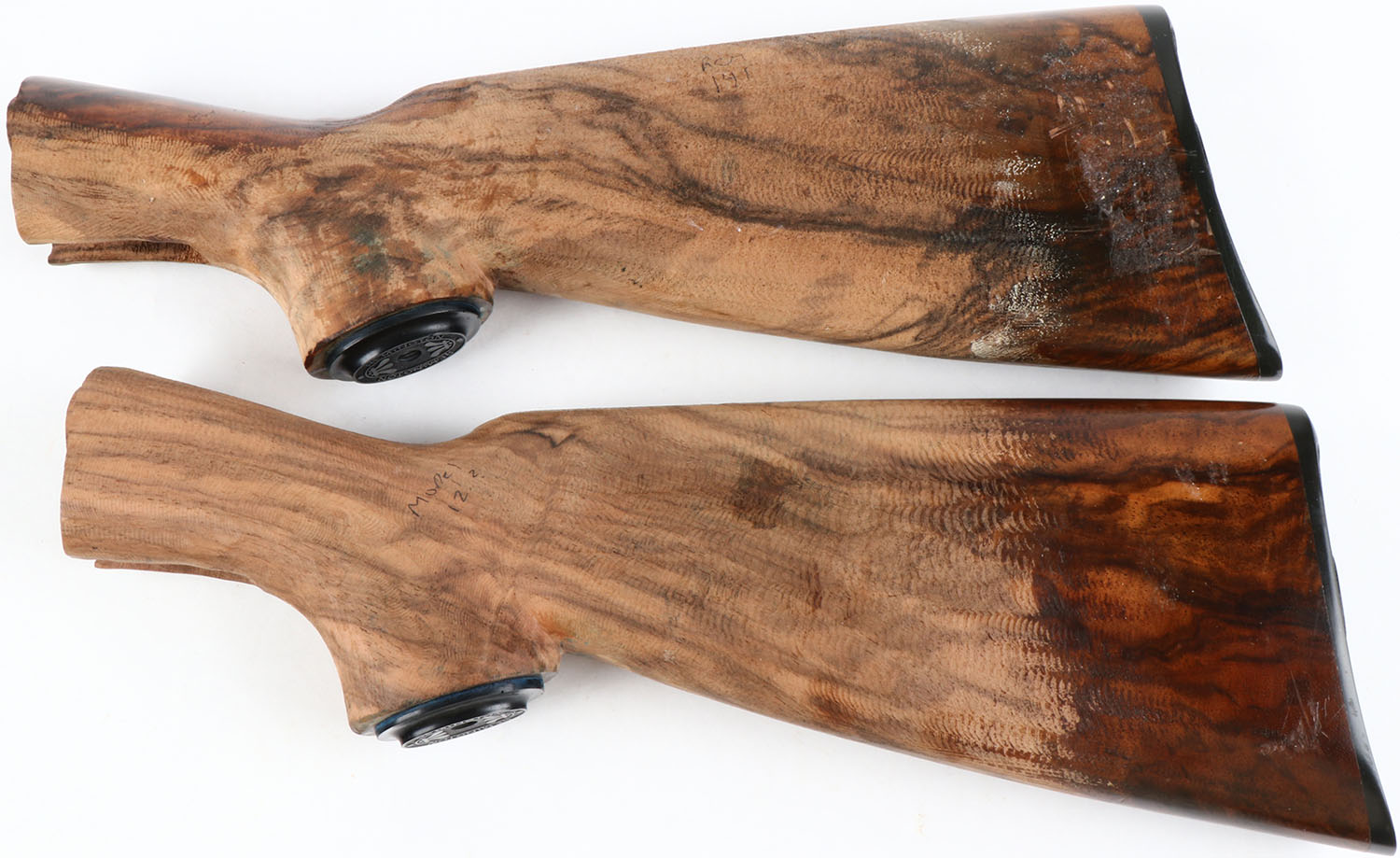 Remington Lot of 2 wood buttstocks with plastic Remington butt plates & pistol grip caps. Grade: Very Good ++ - Value: 20 to 100