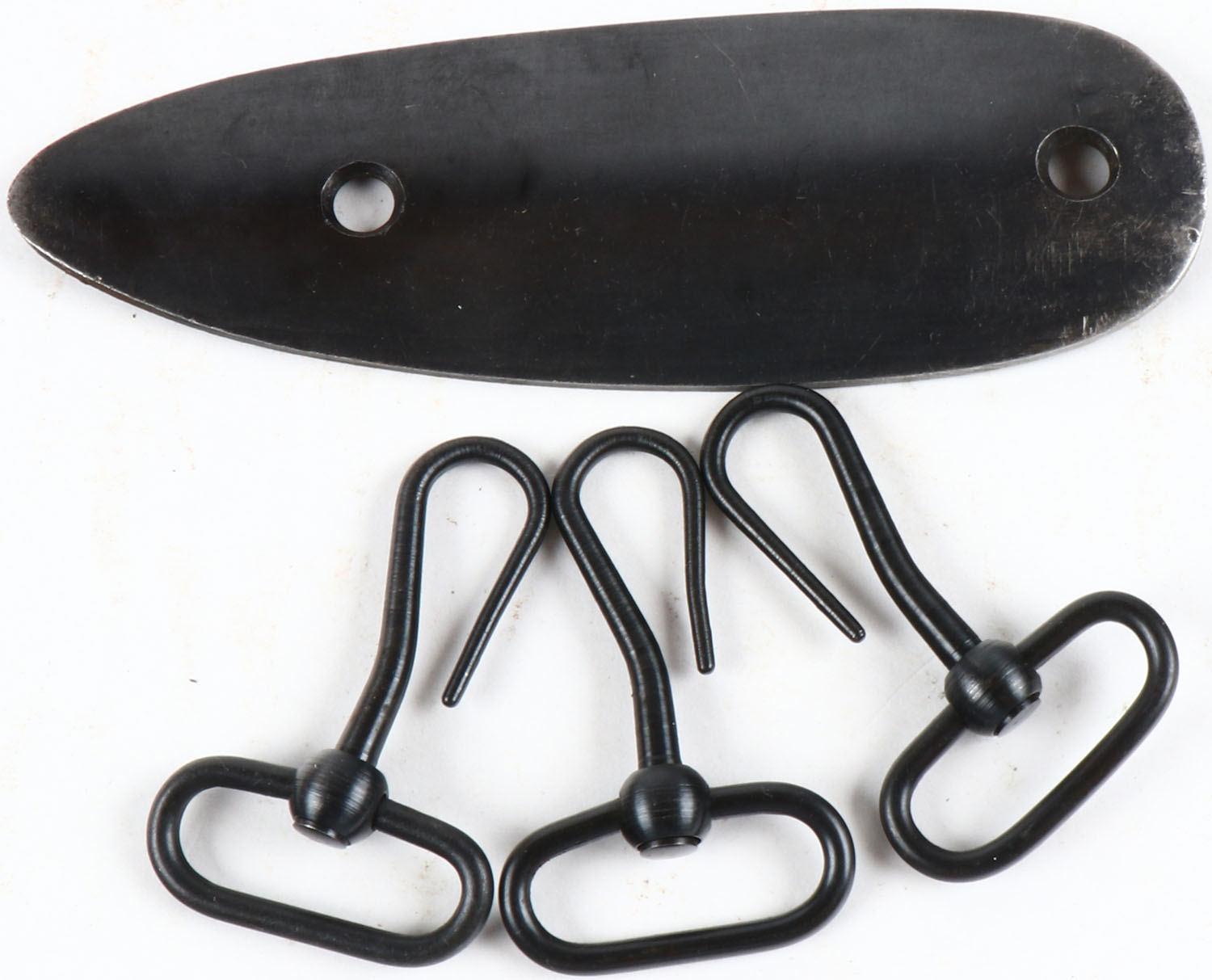 Lot of 2, butt plate and 3 rifle slings. Grade: Excellent - Value: 4 to 40