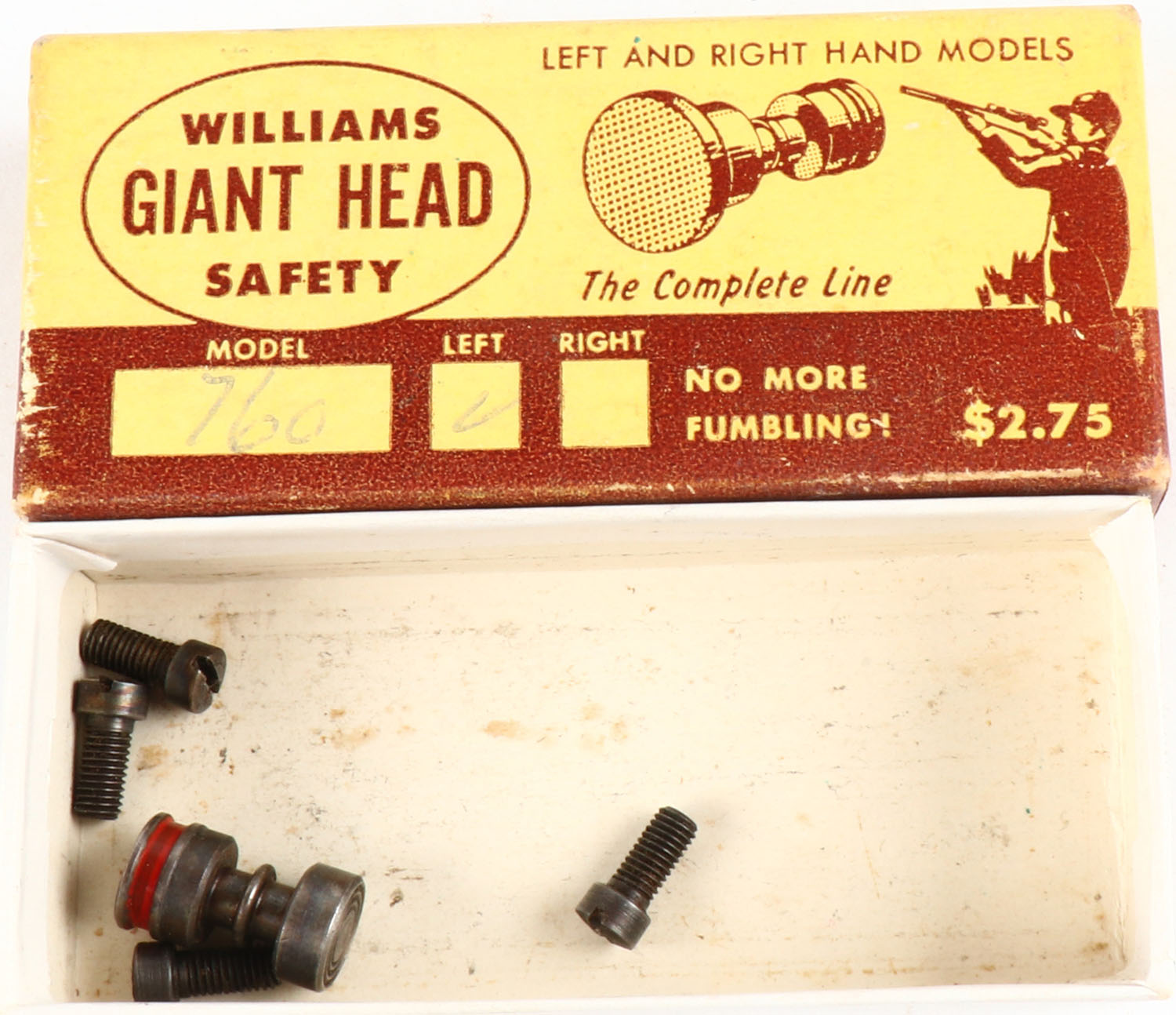 Williams Giant head safety, Model 760, left handed, in orginal box, with screws. Grade: Very Good ++ - Value: 2 to 20