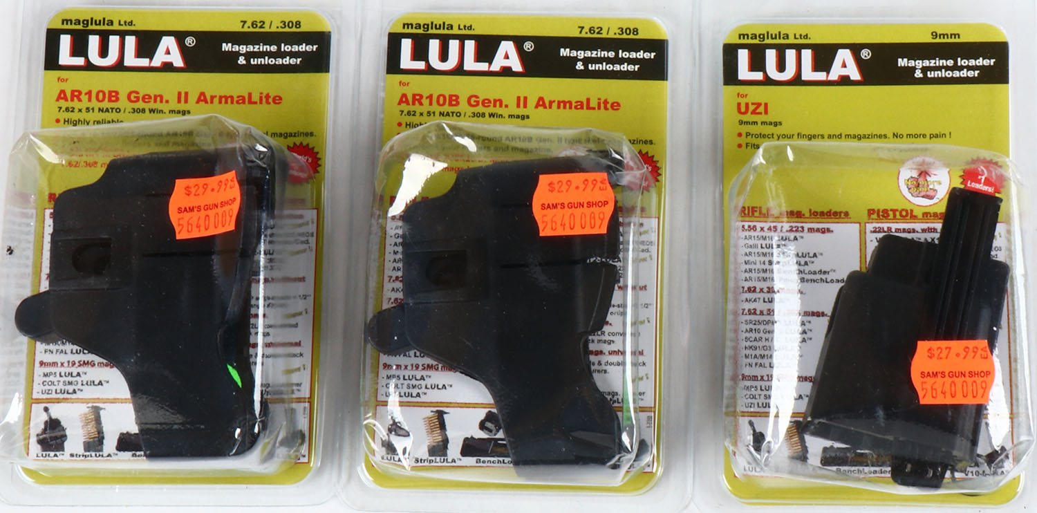 Lot of 3 Maglula loaders & unloaders, (2) 7.62/.308 & (1) 9mm. Grade: MINT - Value: 20 to 60