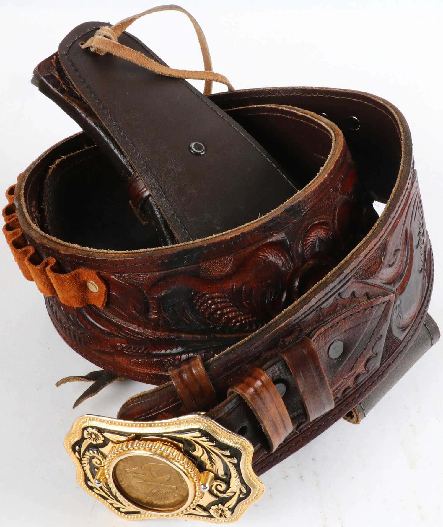 Leather holster & ammo belt for Ruger Redhawk 44 mag Alaska, made in Mexico, size 40-45, has NRA blet buckle. Grade: Excellent + - Value: 20 to 100