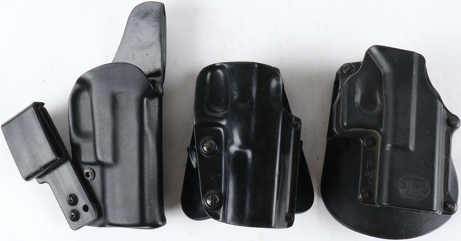 Lot of molded holsters for over a belt. Grade: Excellent - Value: 10 to 50