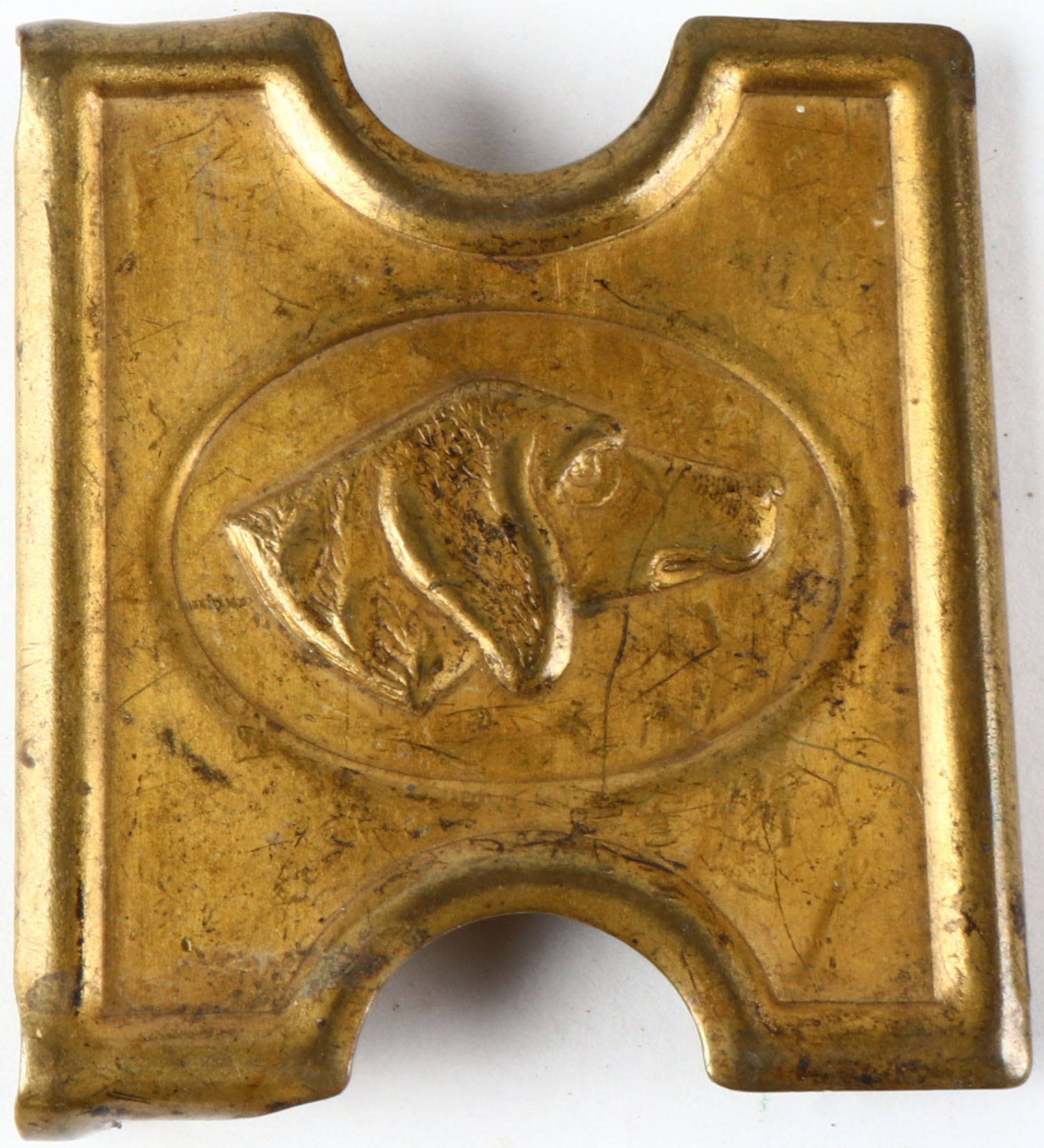 Anston Mills Worchester Mass , brass belt buckle, has dogs head on front, well marked. Grade: Excellent - Value: 10 to 50