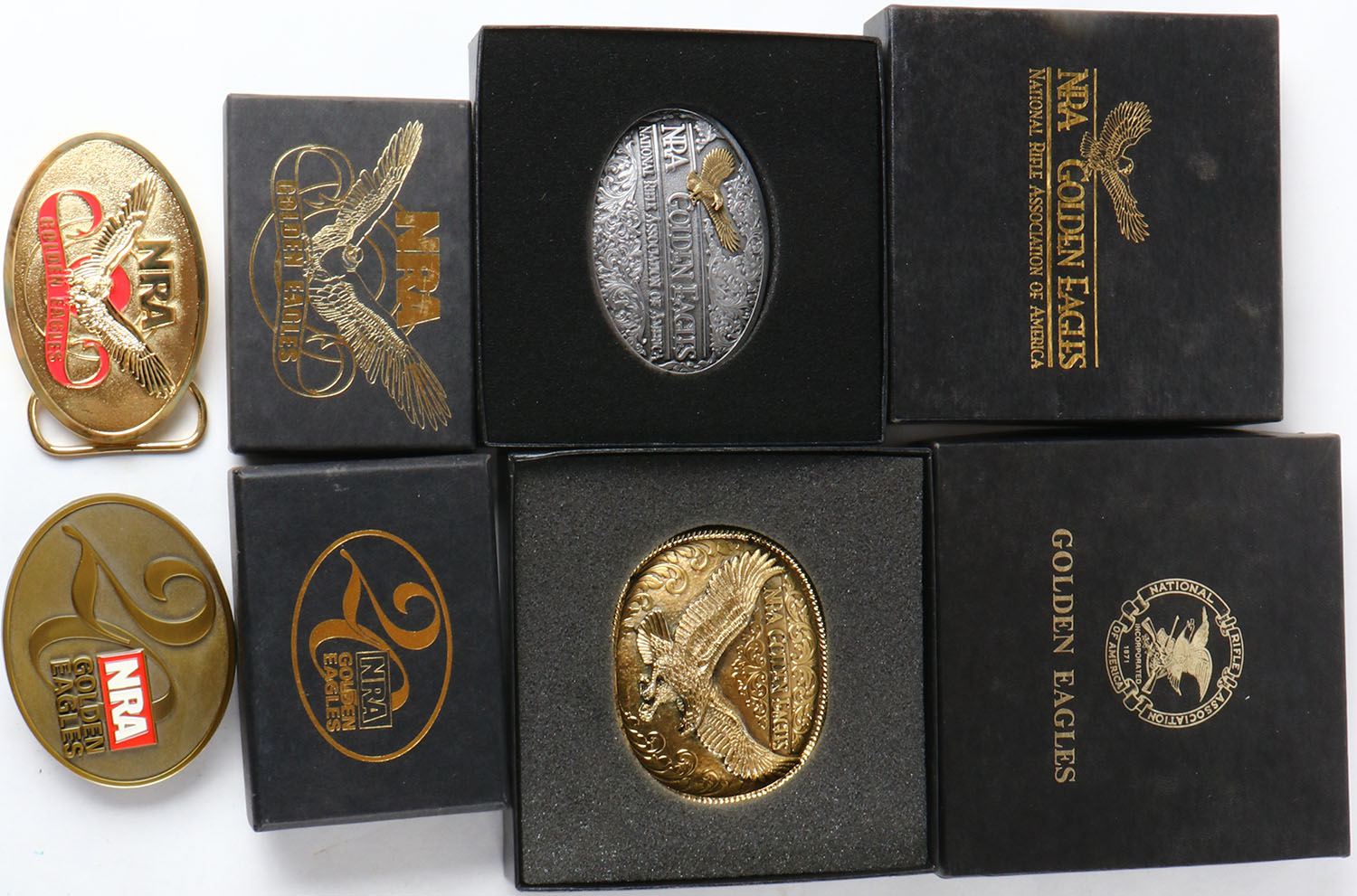 Lot of 4 NRA belt buckles, in original boxes. Grade: Excellent ++ - Value: 16 to 80