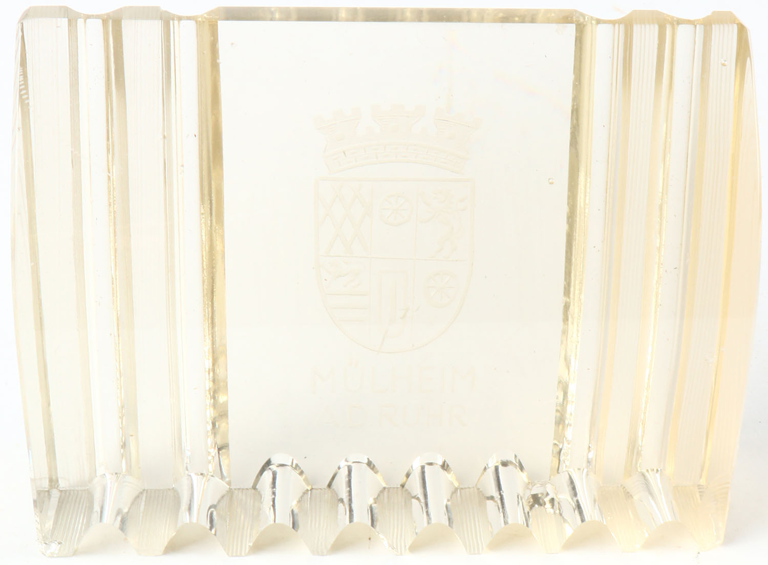 WWI German heavy glass paper weight, has three etched crowns/shield, Mulheim A.D. Ruhr, a few minor scratches. Grade: Very Good ++ - Value: 10 to 100