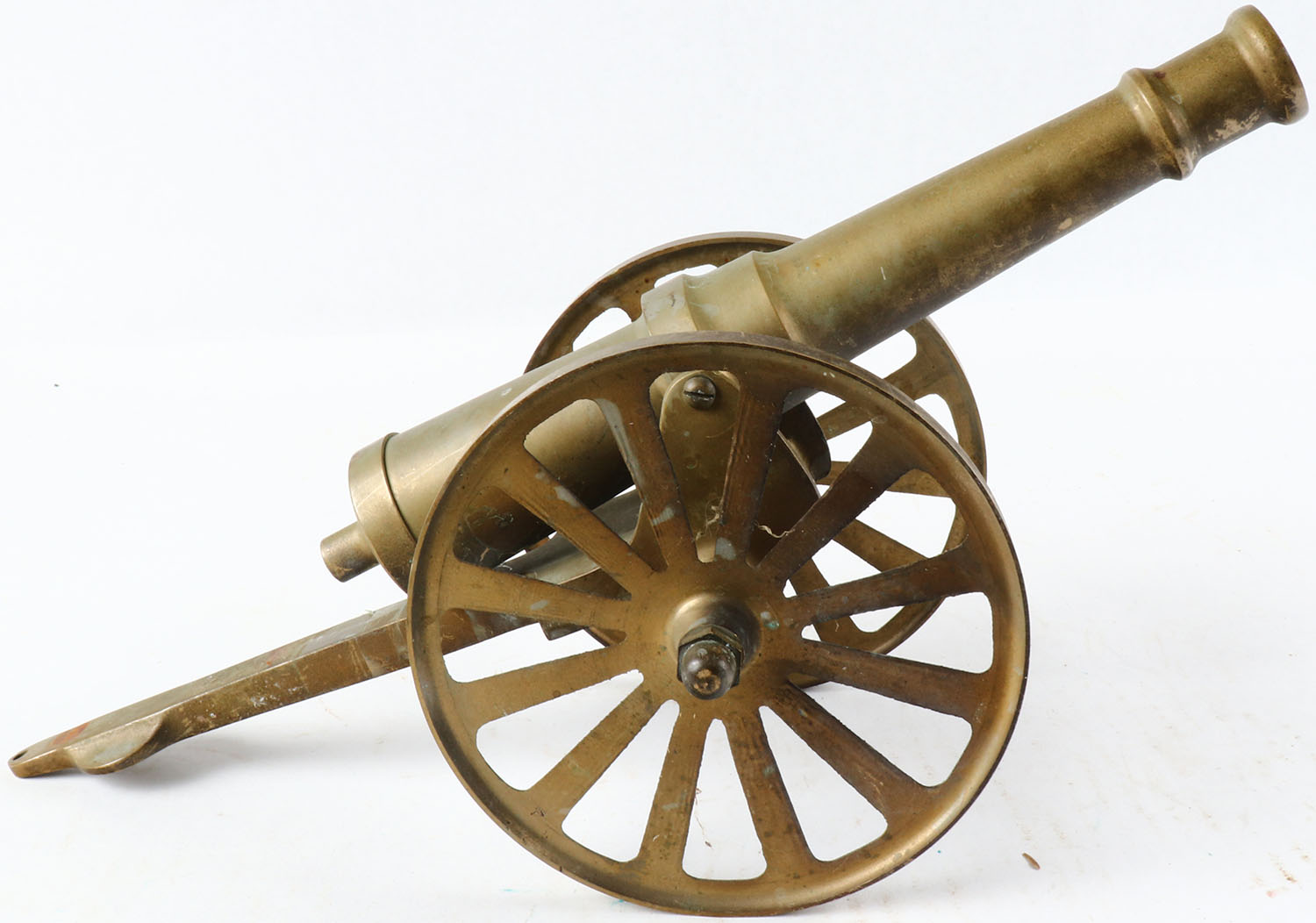 Heavy Vintage brass cannon, 15 1/4'' OAL, fuse hole. Grade: Very Good - Value: 50 to 200