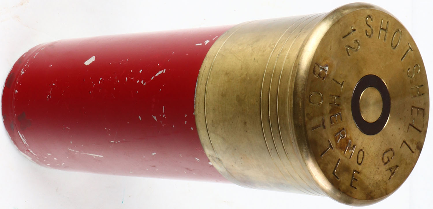 Shotshell shaped thermos, has wear. Grade: Very Good - Value: 2 to 20