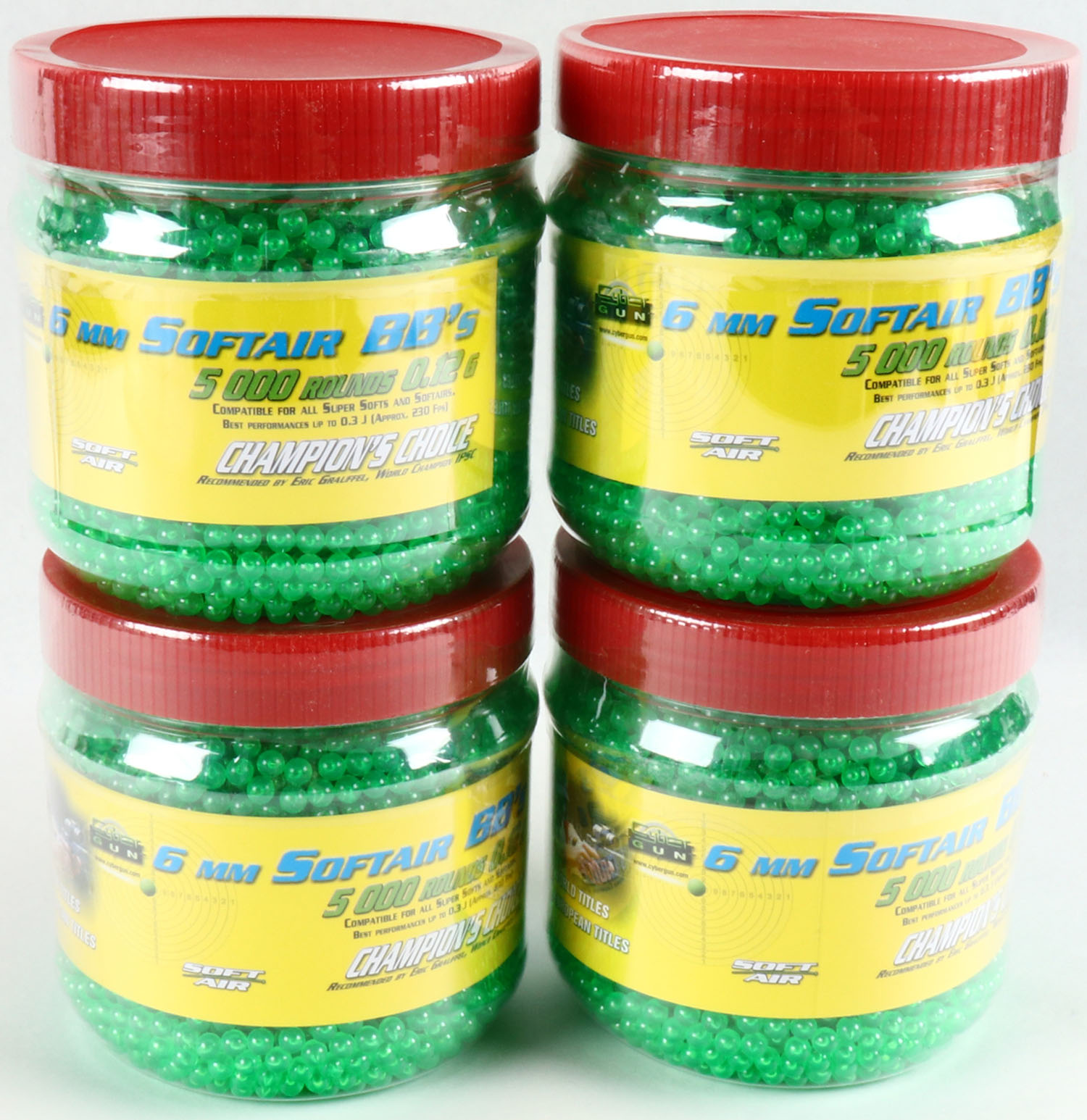 Lot of 4, 6mm Soft air BB's, 5000 rds in each. Grade: MINT - Value: 10 to 100