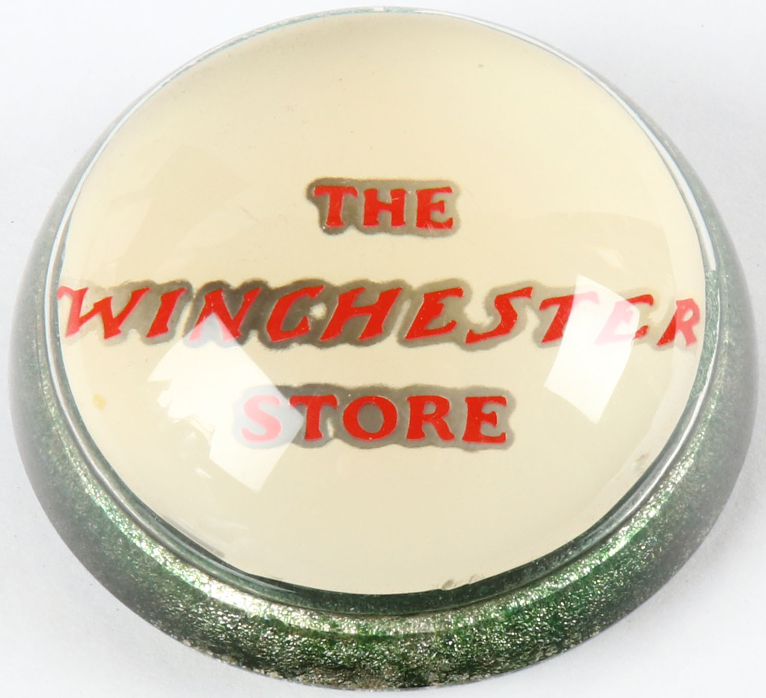 The Winchester Stoer Domed paper weight, 3'' dia. Grade: Excellent - Value: 10 to 50