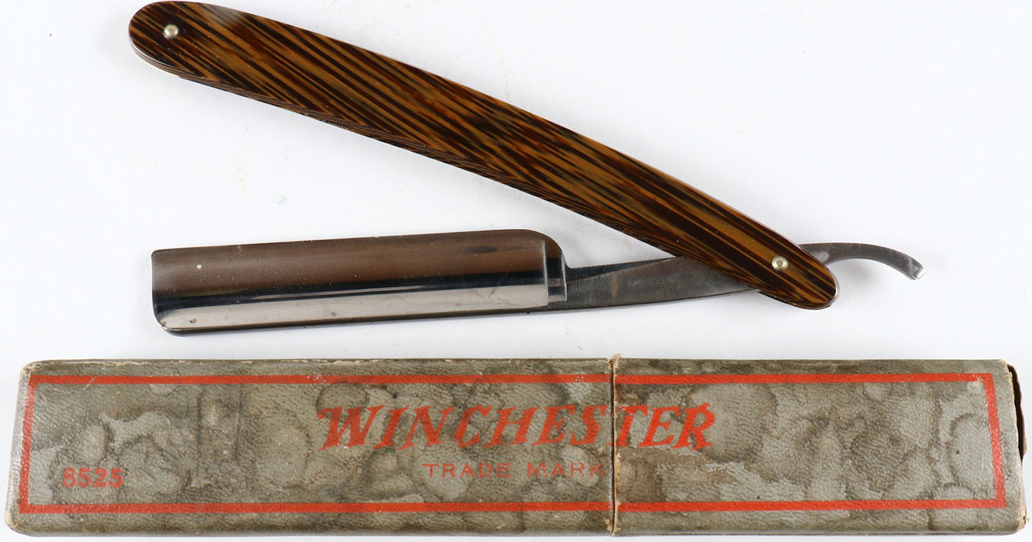 Winchester Straight Razor in original case, No. 8533, very nice with some water stains to box. Grade: Excellent - Value: 20 to 100