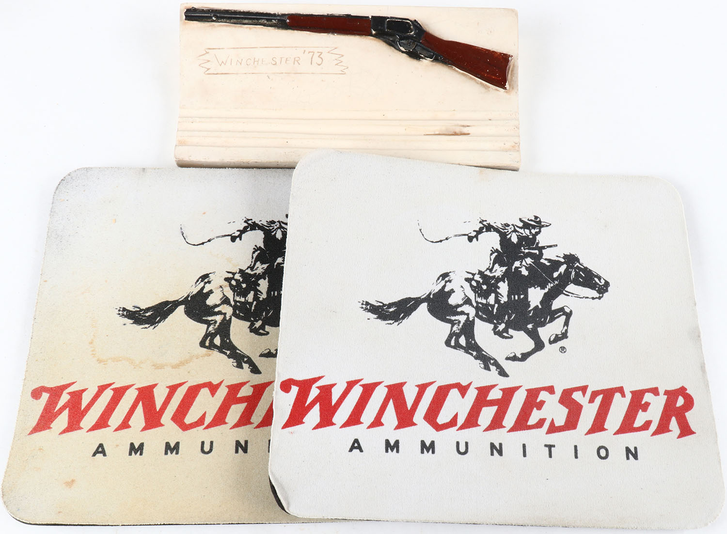 Lot of 3 Winchester items, 2 mouse pads, 73 desk pen holder. Grade: Excellent - Value: 2 to 30