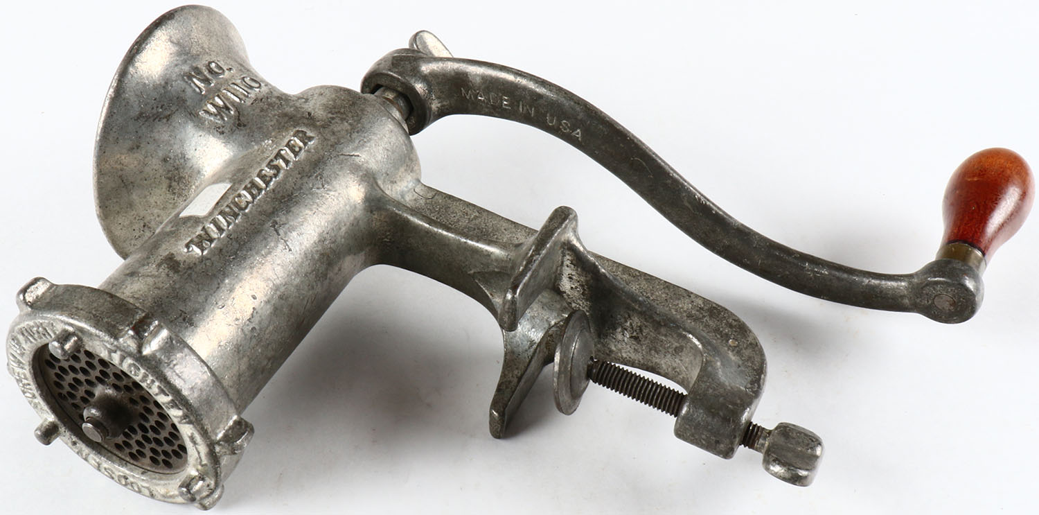 Winchester Meat Grinder with wood handle, No. W110. Grade: Excellent - Value: 6 to 40