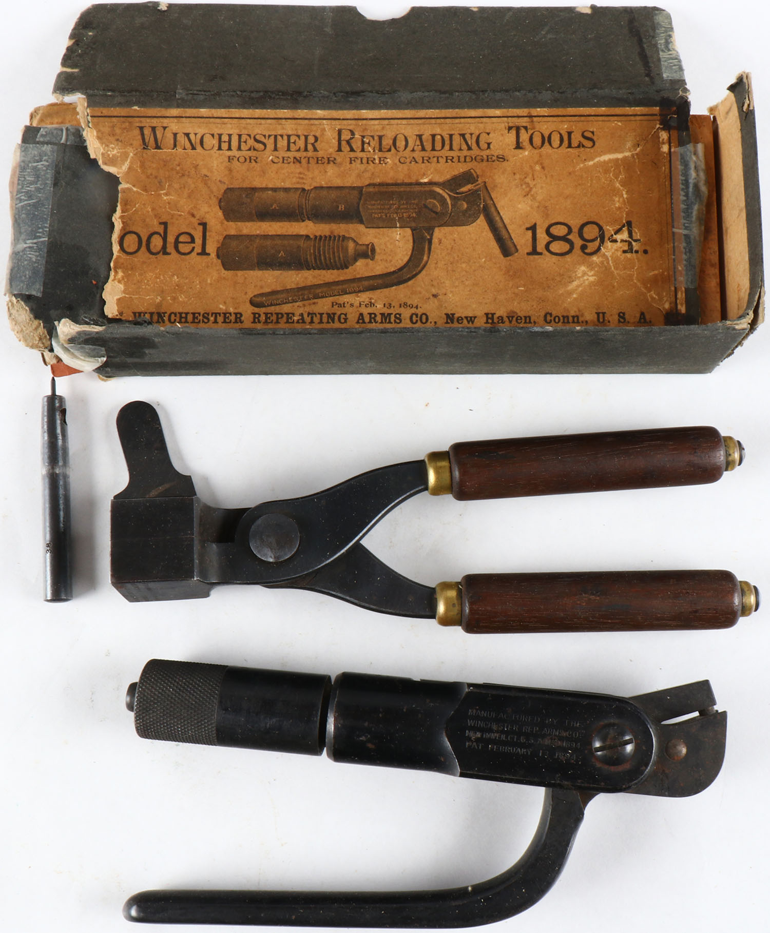 Lot of 2 Winchester Reloading tools in original box, Model 1984, 38.55 CF, tools are very nice & box is falling off. Grade: Very Good ++ - Value: 50 to 250