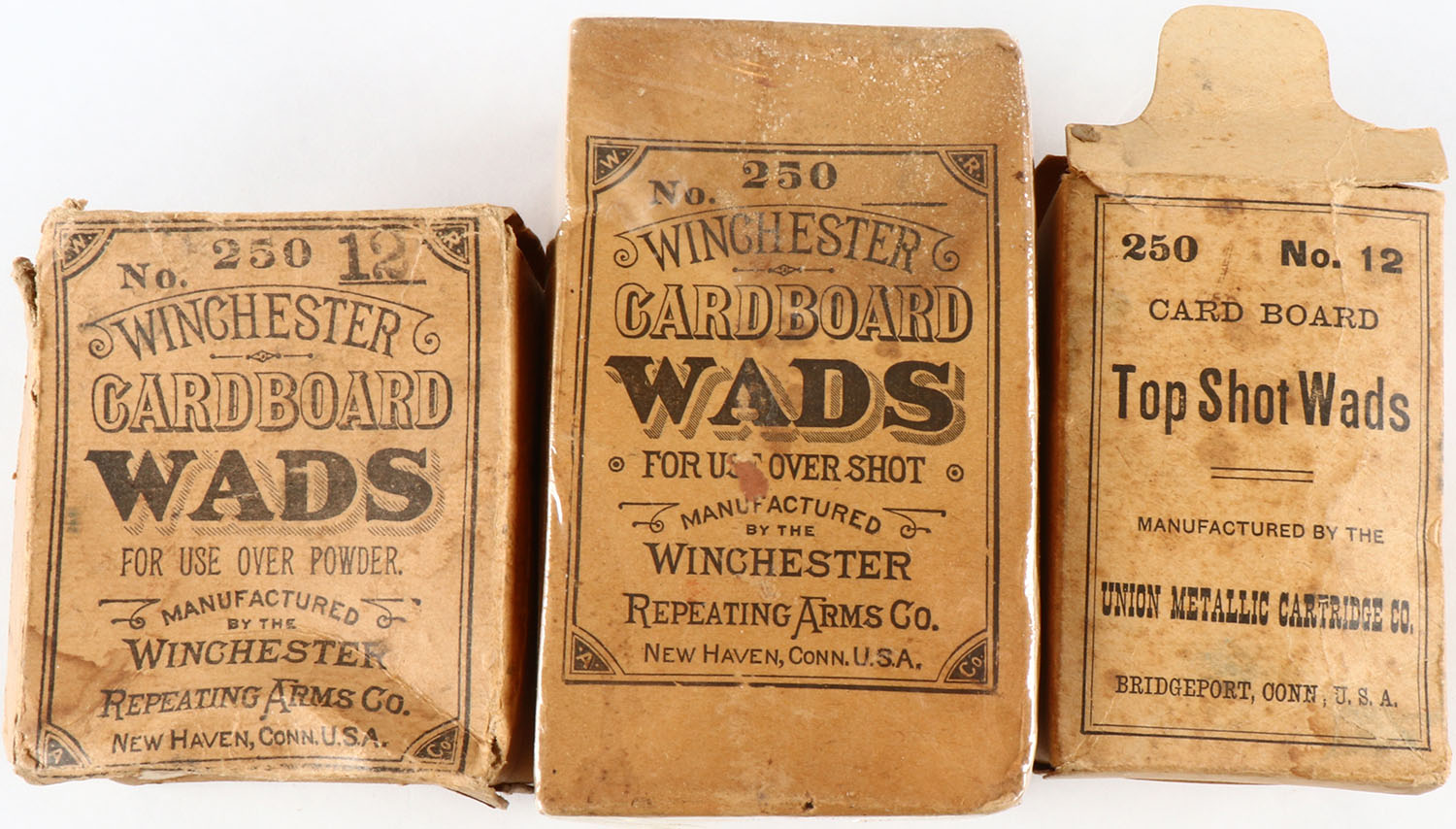 Lot of 3 Winchester/UMC wads, all nearly Full. Grade: Very Good ++ - Value: 6 to 60