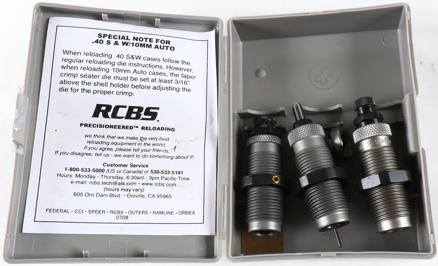 RCBS reloading dies, 40 S&W/10 mm., in original box. Grade: Excellent - Value: 10 to 50
