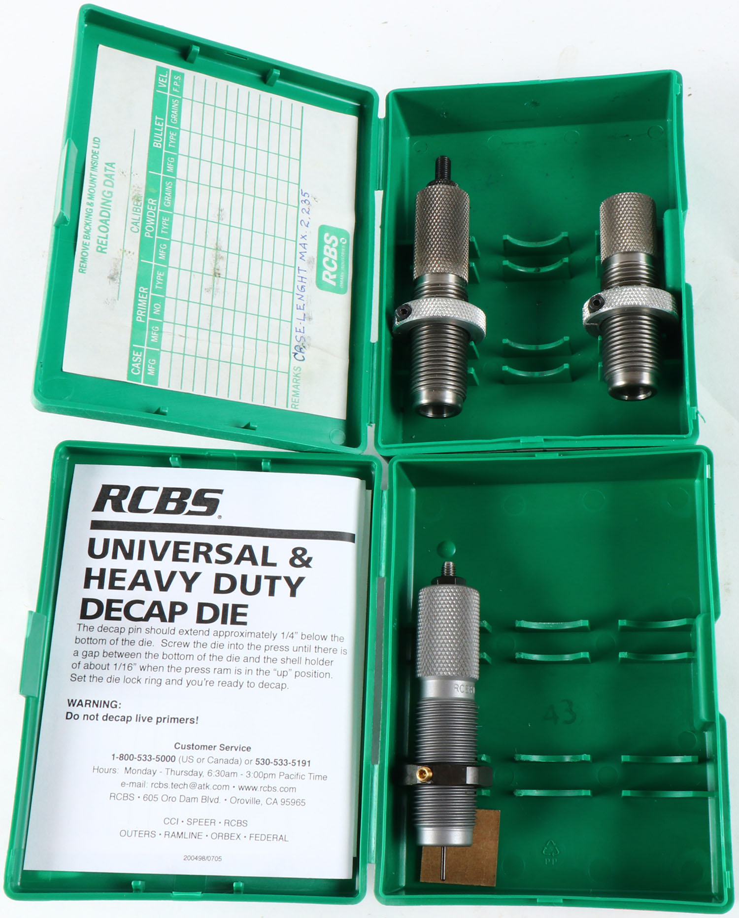 Lot of 2 RCBS reloading dies, 7mmx57 Mauser, .22-25 cal., in original box. Grade: Excellent - Value: 20 to 80
