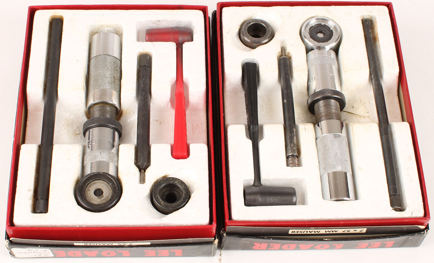 Lot of 2 Lee Loader Full and Complete, 7x57 mm Mauser and 7.65 Mauser, in original box. Grade: Very Good - Value: 20 to 80
