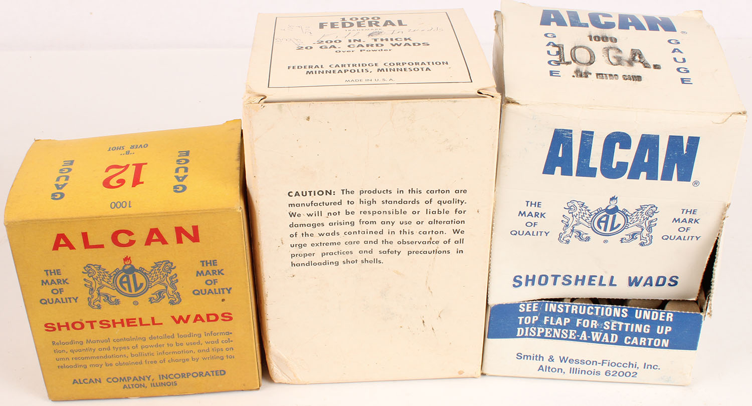 Lot of 3 wad boxes, partial. Grade: Very Good ++ - Value: 2 to 40