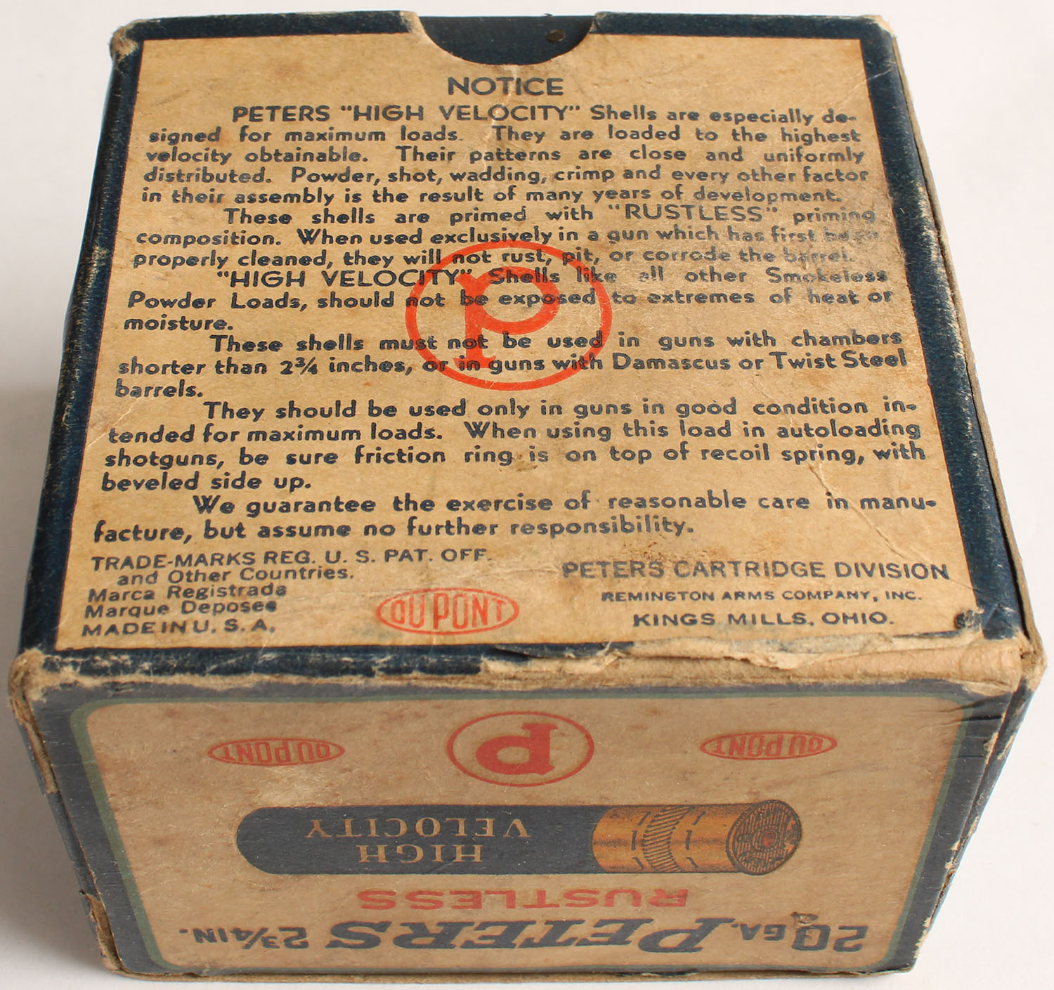 | Peters Cart. Div., King Mills, OH, High Velocity, 20ga., 2 3/4'...