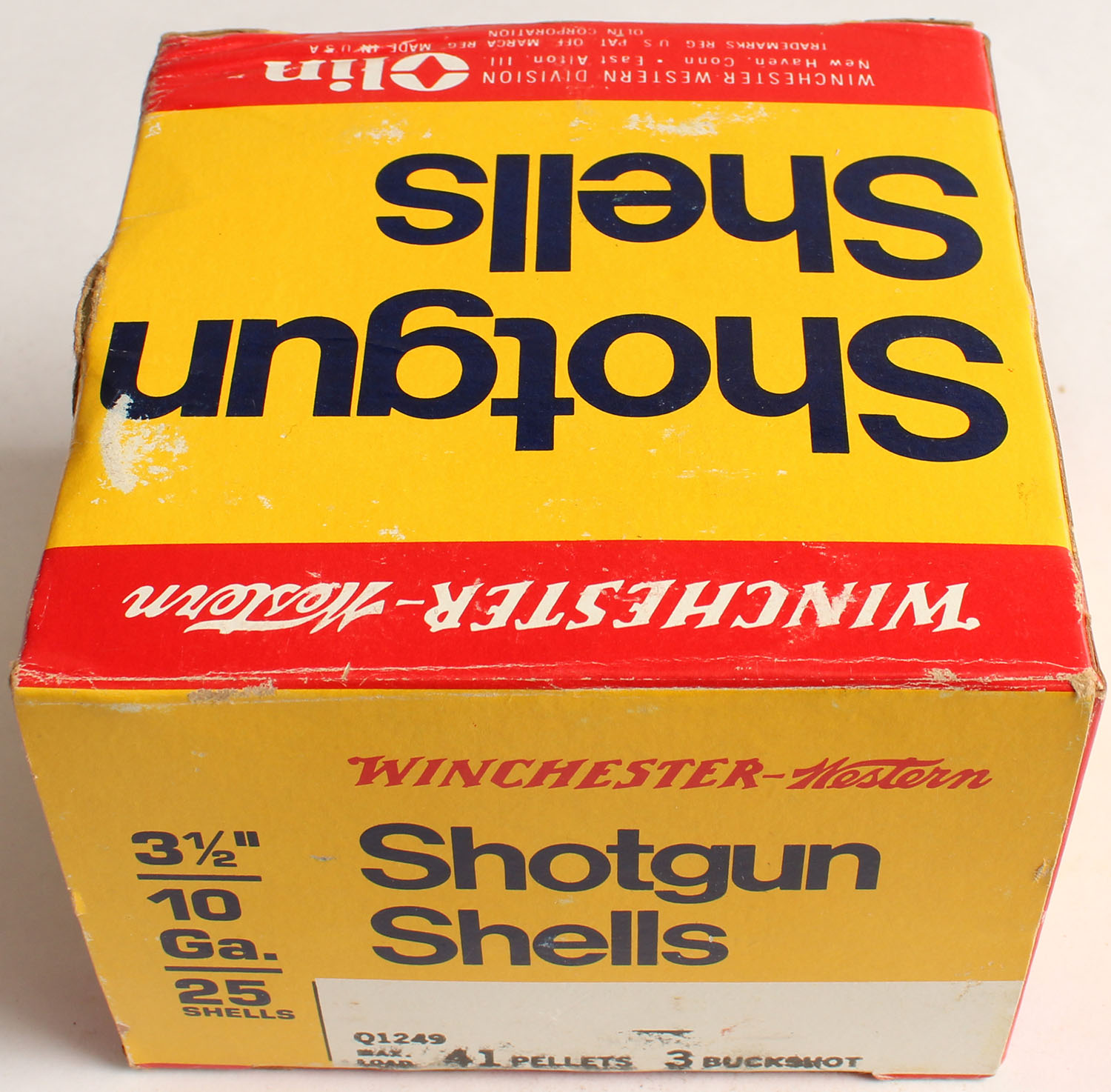 Winchester-Western, 10ga., 3 1/2'', 1pc., Full, shot size 3 Buckshot, multi-colored box, box has shell protrusion with great colors, shells are excellent. Grade: Excellent - Value: 20 to 80