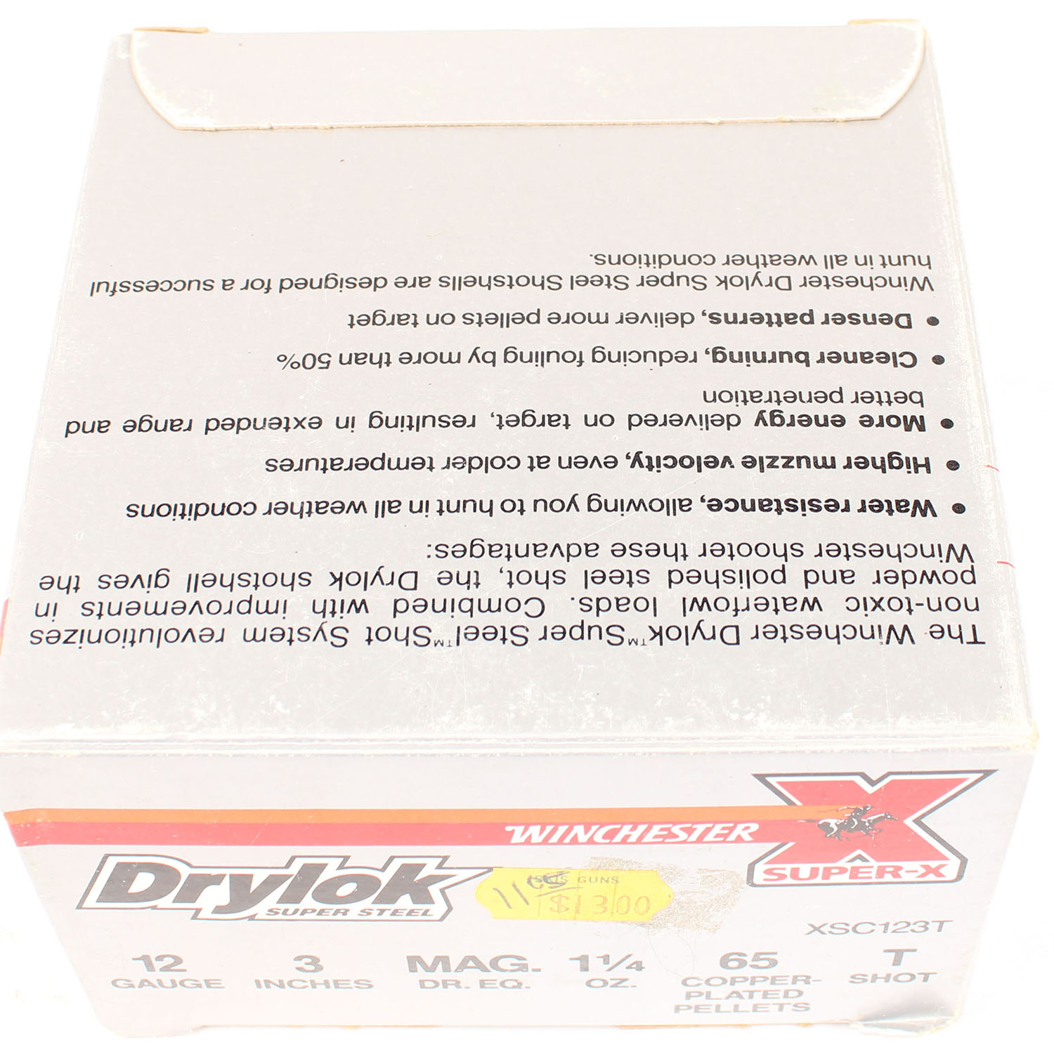 Winchester, Super X Magnum, 12ga., 3'', 1pc., Full, shot size Copper Plated Steel T Shot, multi-colored box, box is solid with light scuffing & great colors, shells are excellent. Grade: Excellent - Value: 10 to 30