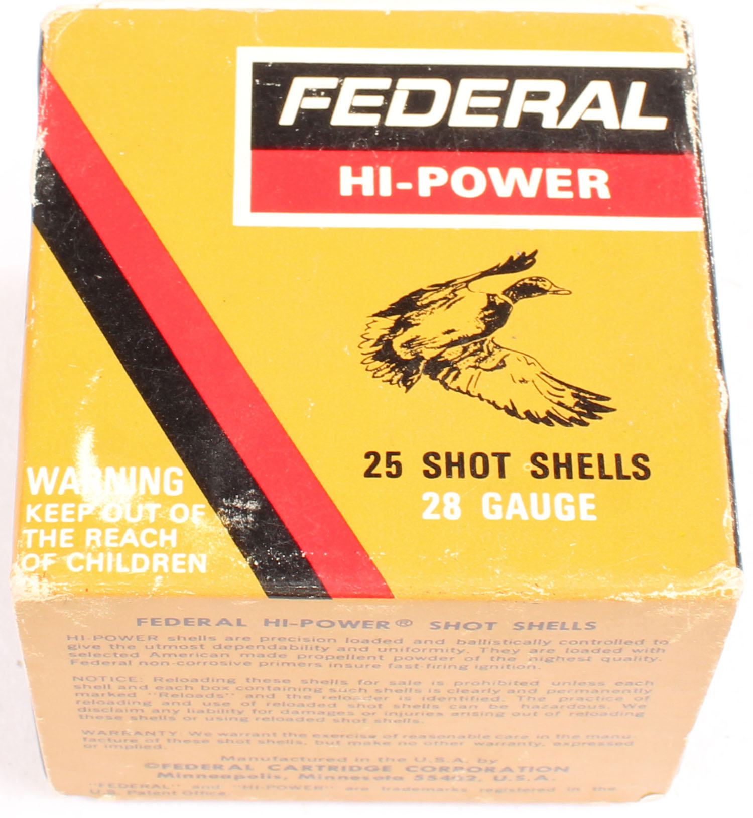 Federal, Hi-Power, 28ga., 1pc., Full, shot size 6 Maximum Load, multi-colored box, box is solid, shells are excellent. Grade: Very Good ++ - Value: 10 to 30