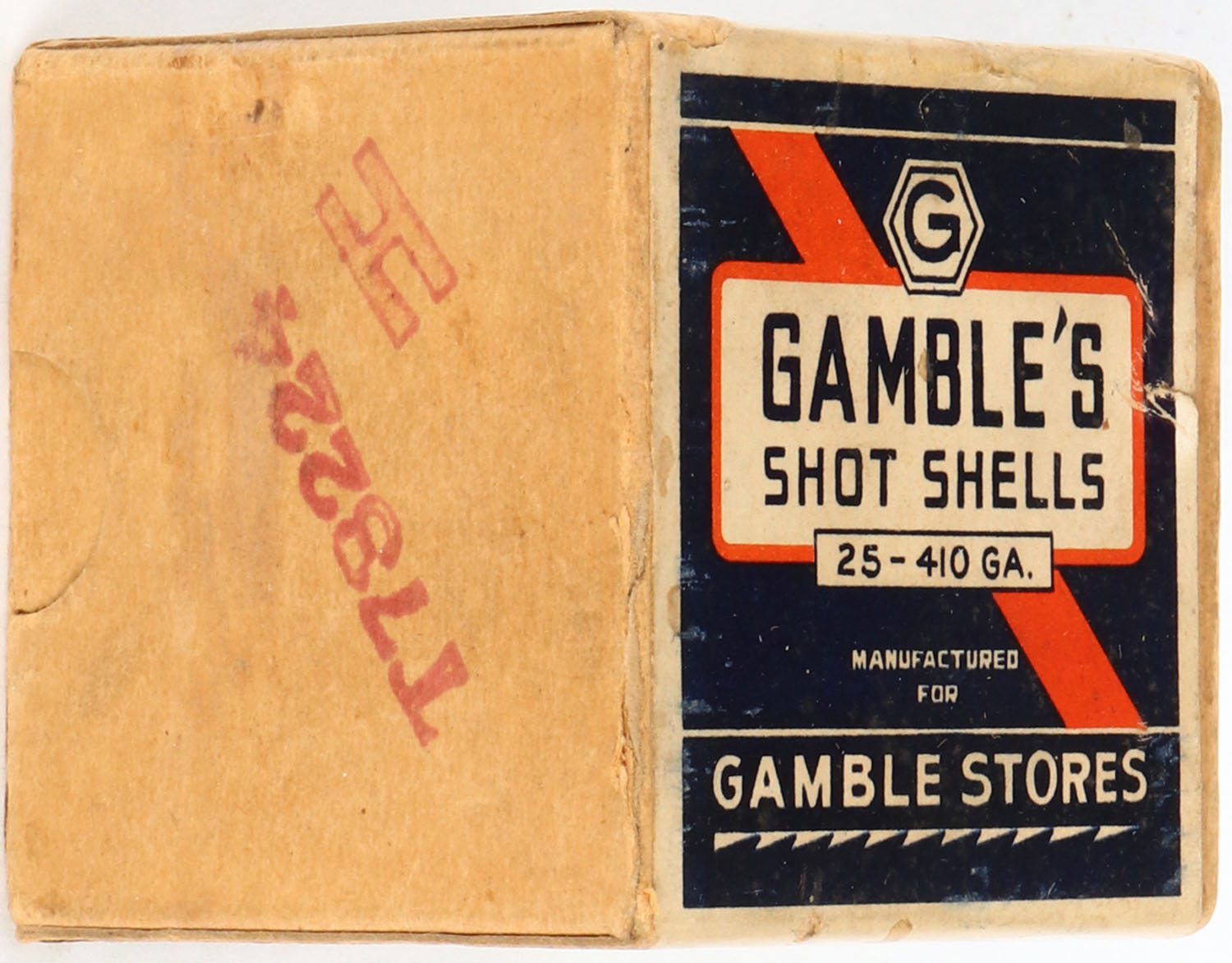 Gambles, ACE Shot Shells, 410ga., 2pc., Full, shot size 5ch, blue, orange & white box, box is very solid with light soiling & very nice colors, Shells are excellent. Grade: Very Good ++ - Value: 100 to 500
