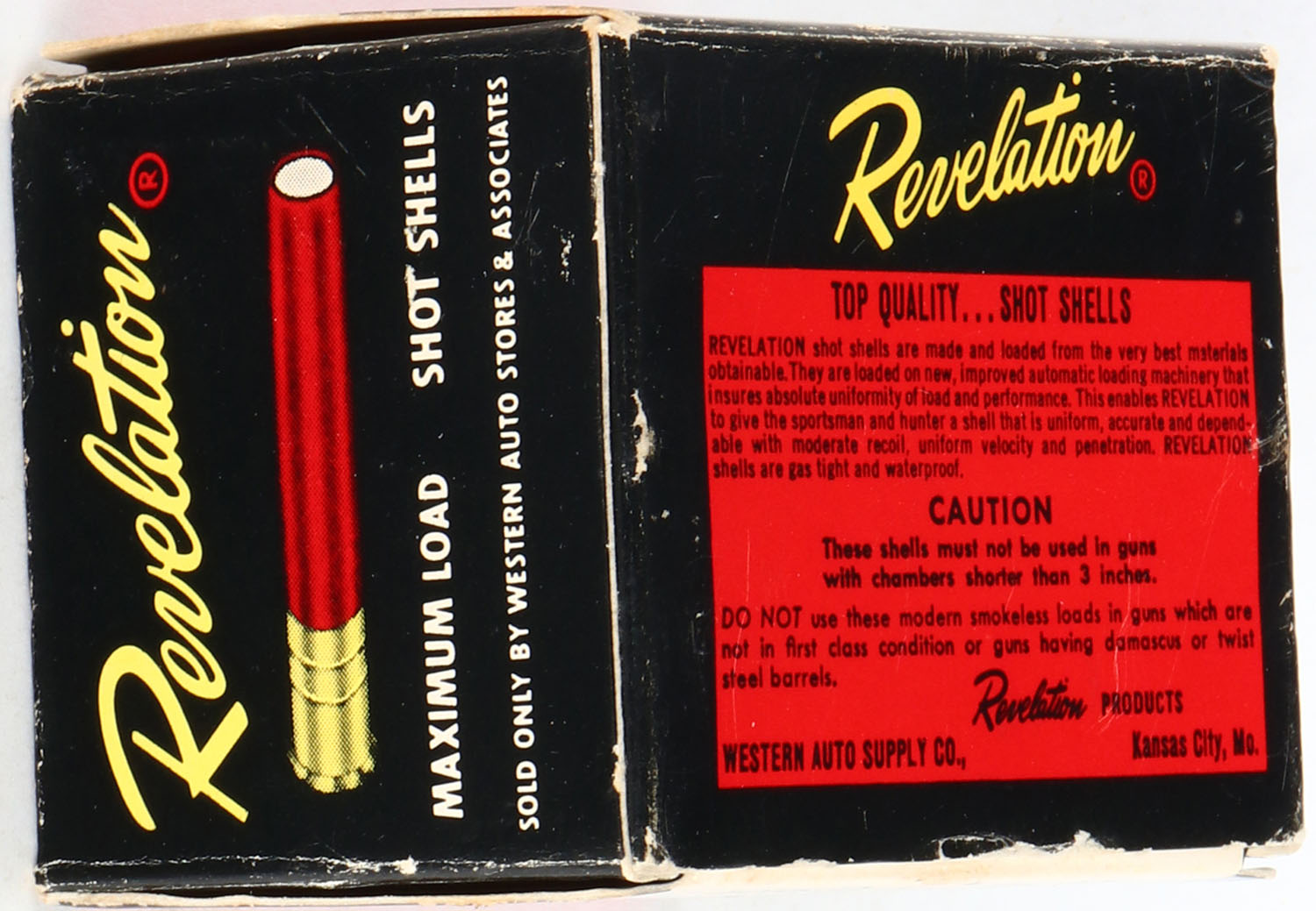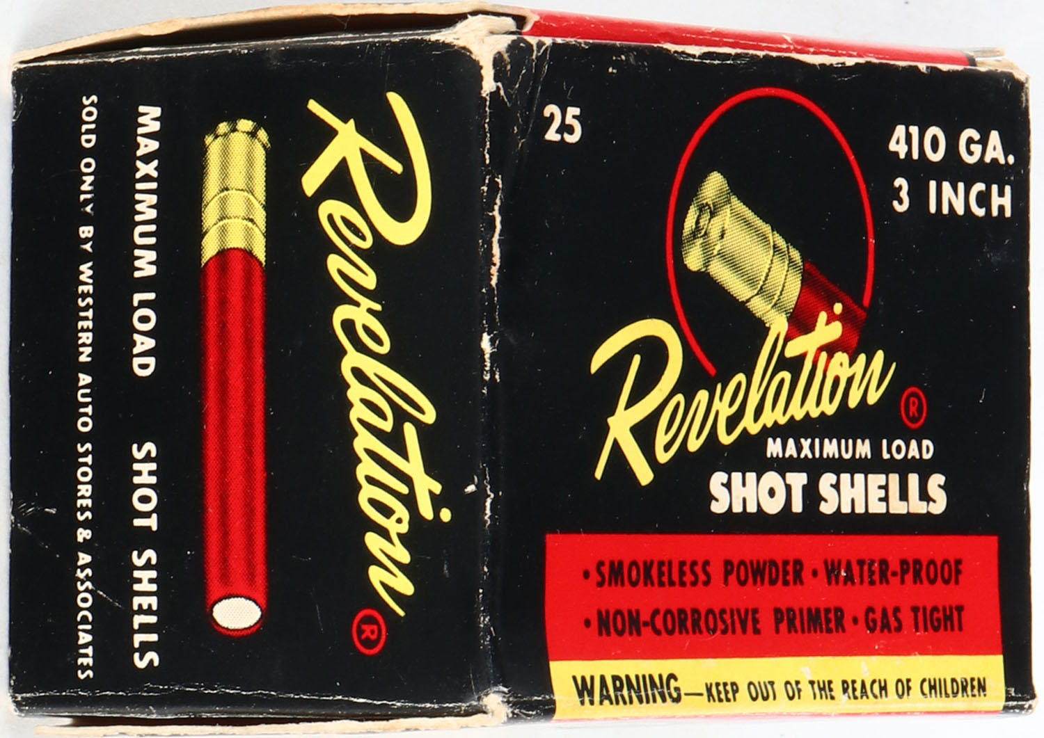 Revelation, 410ga., 3'', 1pc., Full, shot size 6, multi-colored box, box is solid with very nice colors, shells are excellent. Grade: Excellent - Value: 10 to 30